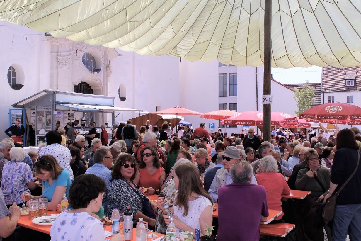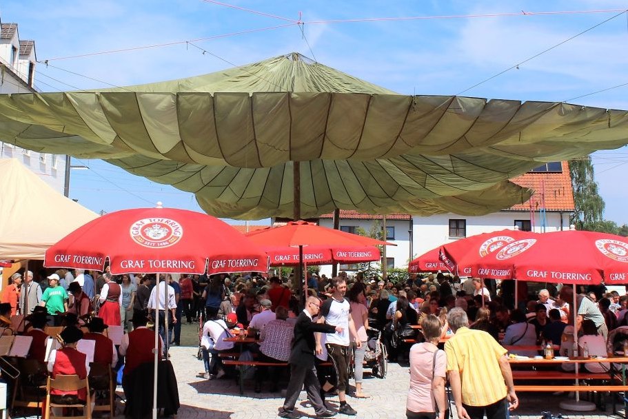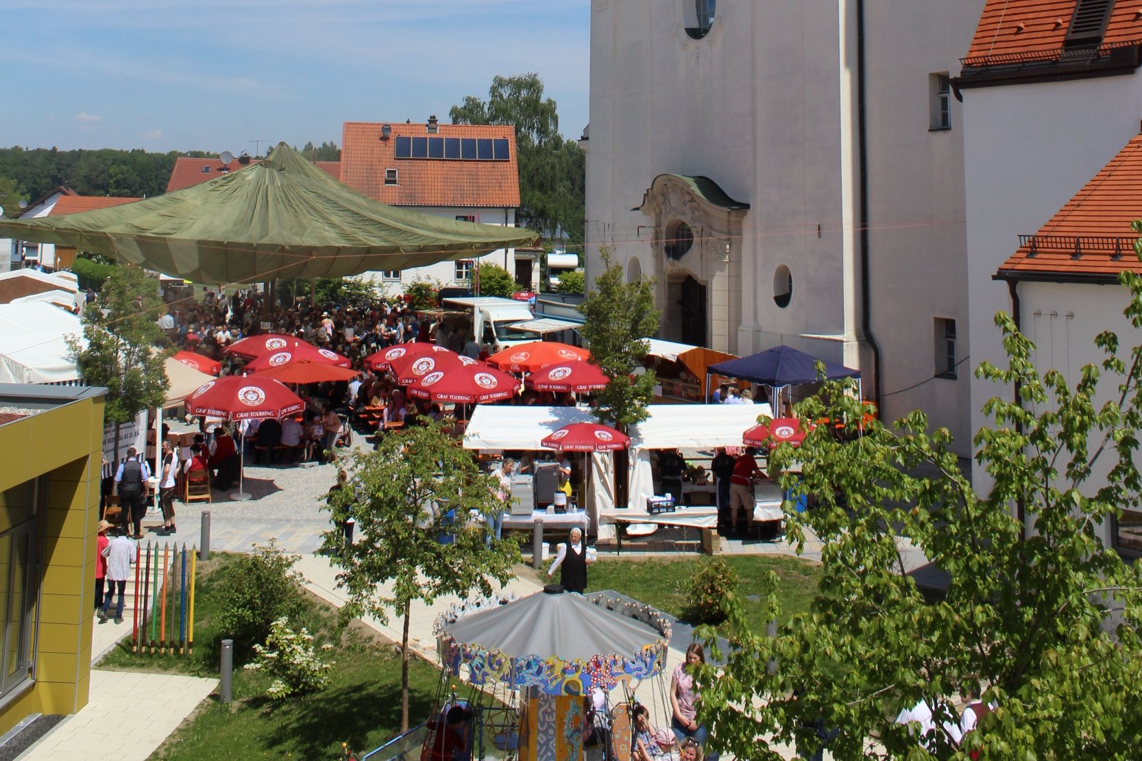 (ty) Die Sonne strahlte mit den Besuchern um die Wette, zahlreiche Leute hatten sich am 19. Mai auf dem Klosterberg eingefunden um bei Regens-Wagner das Frühlingsfest zu feiern. Ob Steckerlfisch, bayerischer Döner, Bratwürste oder Süßes – kulinarisch war für jeden etwas dabei. Kaum ein Platz unter den Fallschirmen blieb unbesetzt. Auf der Bühne wurden etliche musikalische Aufführungen geboten. Im täuschend echten Indianer-Lager waren verschiedene Stationen zum Spielen und Basteln aufgebaut.