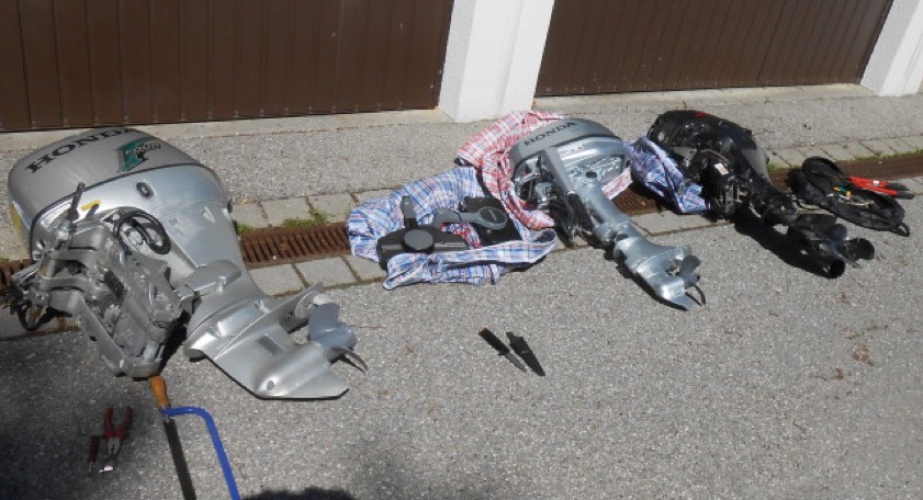 Den Beamten fiel sofort auf, dass alle an den Motoren befindlichen Stecker abgeschnitten worden waren. Zudem wurde im Fahrzeug noch weiteres Boot-Zubehör sowie Werkzeug gefunden. Im Kofferraum entdeckten die Beamten dann auch noch nasse Turnschuhe. Die beiden Männer wurden daraufhin vorläufig festgenommen. Die weiteren Maßnahmen wurden von der Kripo übernommen.
