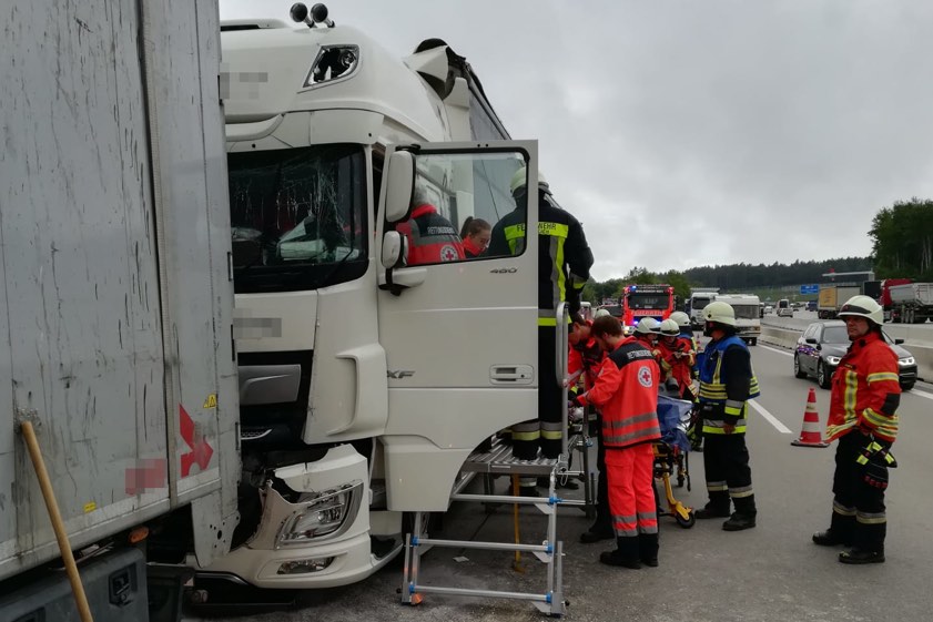 Der hinter dem 47-Jährigen fahrende 57-Jährige aus Ingolstadt habe die Situation offenbar zu spät erkannt und sei mit seinem DAF-Sattelzug auf den vor ihm bereits zum Stillstand gekommenen Sattelzug des 47-Jährigen aufgefahren. Der 57-Jährige habe hierbei schwere Verletzungen erlitten. Er musste von den Feuerwehrleuten, die aus Wolnzach und Geisenhausen angerückt waren, aus seinem Führerhaus geholt werden. Anschließend wurde er vom Rettungsdienst in ein Ingolstädter Krankenhaus gebracht.
