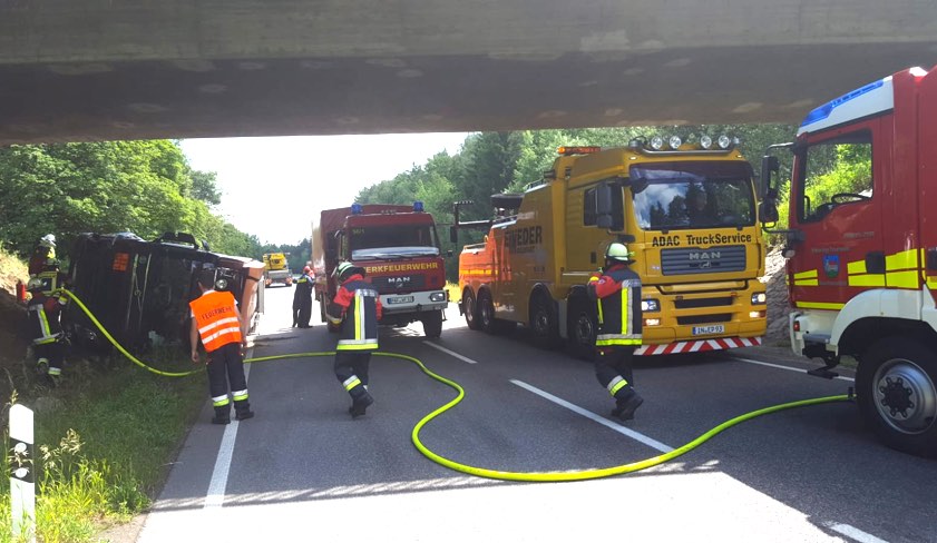 Der Lkw ist am Fahrbahnrand zum Liegen gekommen. Die B16 ist in diesem Bereich derzeit komplett für den Verkehr gesperrt. Aktuell wird davon ausgegangen, dass die Vollsperrung bis zum Abschluss der aufwändigen Bergungs-Arbeiten aufrecht erhalten bleiben muss – also wohl mehrere Stunden.