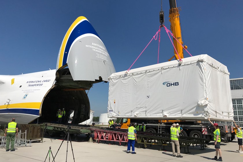 "Ein weiterer Container wurde über das bordeigene Kransystem in den Laderaum des Flugzeugs bugsiert", berichtet die FMG. Inzwischen befinde sich die außergewöhnliche Fracht-Sendung auf der Reise zum europäischen Raumfahrt-Bahnhof Kourou in Französisch-Guyana. Von dort aus starte der Satellit, um später eine weltraum-gestützte Kommunikation sowie einen Daten-Austausch aus der Erdumlaufbahn zu ermöglichen.