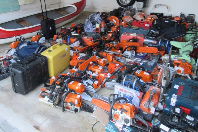 Insgesamt 166 Positionen standen schließlich auf dem Sicherstellungs-Verzeichnis der Polizei. Der Wert der Sachen ist insgesamt schwer festzulegen, dürfte sich aber im sehr hohen fünfstelligen Euro-Bereich bewegen. Bei einigen Maschinen konnte bereits festgestellt werden, woher sie stammen: Sie wurden unter anderem in Recklinghausen, Moers und Rheurt entwendet. Die Kripo Weiden hat die weiteren umfangreichen Ermittlungen aufgenommen, um die Einzelstücke den Taten und rechtmäßigen Besitzern zuzuordnen. (Foto: Polizei)