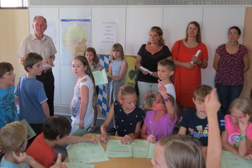 (ty) Unter dem Motto "Lernort Landratsamt" besuchen derzeit Kinder aus den vierten Klassen der Grund- und Förderschulen im Kreis Pfaffenhofen das Landratsamt. An insgesamt sieben Vormittagen stehen Landrat Martin Wolf (CSU), dessen Stellvertreter Anton Westner (CSU) und Josef Finkenzeller (FW) sowie Mitarbeiter der Behörde für die Fragen der über 800 Schüler zur Verfügung. Begleitet werden sie von ihren Lehrkräften. Bei einer Rätsel-Rallye durch die Behörde können die Mädchen und Buben ihr Wissen unter Beweis stellen und erweitern.