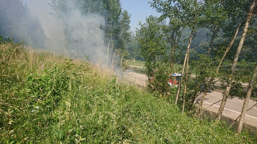 A93 war während der Löscharbeiten nur einspurig befahrbar. Übergreifen der Flammen auf den Wald wurde verhindert.