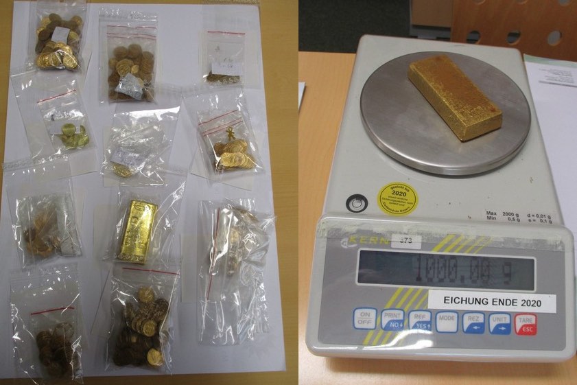 (ty) Am Donnerstagmorgen kontrollierten Passauer Grenzpolizisten auf der A3 bei der Ausreise einen Pkw, der von einem 41-jährigen russisch-israelischen Staatsangehörigen gesteuert wurde. Bei der Durchsuchung des Wagens fanden die Polizisten – versteckt unter der Rücksitzbank – eine Tasche mit rund 5,6 Kilogramm Gold in Form von Münzen und eines Goldbarren im Wert von etwa 225 000 Euro. Weil der Mann keine Angaben zur Herkunft und zum weiteren Verbleib machen konnte, wurden die Sachen sichergestellt. Der 41-Jährige wurde nach Rücksprache mit der Staatsanwaltschaft nach den polizeilichen Maßnahmen wieder auf freien Fuß gesetzt. Die Kriminalpolizei führt die weiteren Ermittlungen. (Fotos: Polizei)
