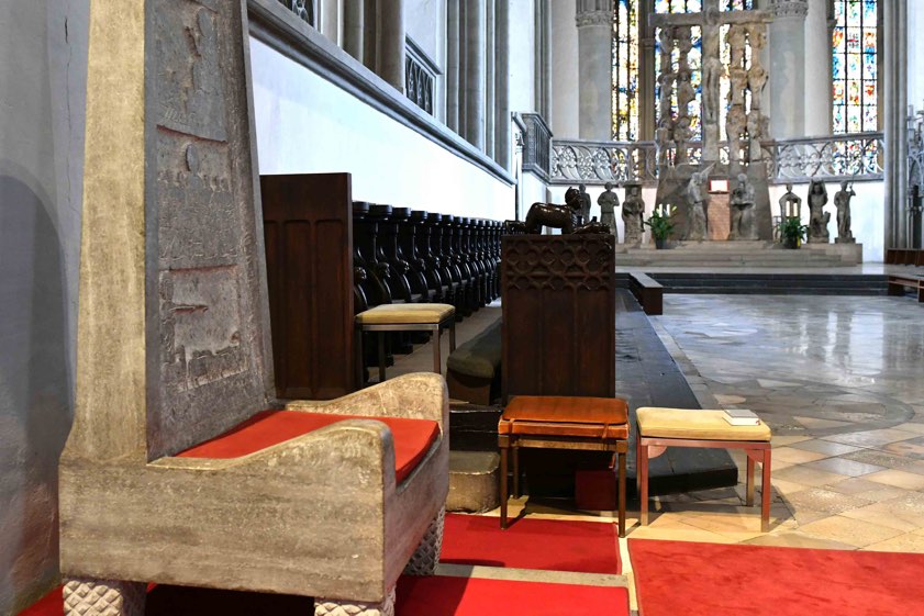 Der Bischofs-Stuhl im Hohen Dom zu Augsburg ist nun vakant (Foto: Nicolas Schnall, pba)