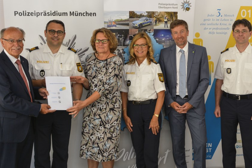 Am gestrigen Donnerstag unterzeichnete Polizei-Vizepräsident Roland Kerscher (Polizeipräsidium Oberbayern-Nord) die Vereinbarung mit dem Krisendienst Psychiatrie für Oberbayern. Außerdem unterzeichneten Leitende Polizeidirektorin Eva Schichl (Polizeipräsidium Oberbayern-Süd), Polizei-Vizepräsident Norbert Radmacher für das Polizeipräsidium München sowie Josef Mederer (Präsident des Bezirktags Oberbayern), Martin Spuckti (Vorstandschef der Kliniken des Bezirks Oberbayern) und Karin Majewski (Paritätischer Wohlfahrtsverband, Bezirksverband Oberbayern). Durch die Kooperations-Vereinbarung wird dem gemeinsamen Bestreben Ausdruck verliehen, Bürger in psychischen Krisen fachliche Hilfestellung zukommen zu lassen.