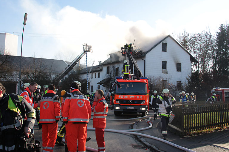 Trotz des schnellen Eingreifens der alarmierten Feuerwehren aus Fahlenbach, Rohrbach, Wolnzach, Pfaffenhofen, Geisenfeld, Langenbruck und Hög wurden große Teile des Obergeschosses und des Dachstuhls ein Raub der Flammen. Ein Übergreifen des Brandes auf ein angrenzendes Gebäude konnten die Einsatzkräfte der Feuerwehren allerdings verhindern. Die Löscharbeiten am Brandort dauern derzeit noch an.