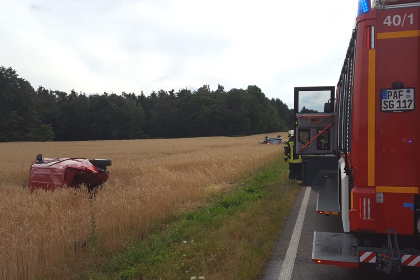 Dieses letzte Fahrzeug, ein roter Kleintransporter, wurde von einem 55-jährigen Mann aus dem Landkreis Weilheim-Schongau gesteuert. Nach der heftigen Kollision wurden sowohl der Mercedes der 74-Jährigen als auch der Kleintransporter nach rechts in ein Getreidefeld geschleudert. Der Kleintransporter kam auf der Fahrerseite zum Liegen, der Mercedes landete auf dem Dach. Weshalb die Frau nicht abgebremst hatte, "konnte sie verständlicherweise in dem ersten Schock nicht sagen", teilte ein Polizei-Sprecher mit.