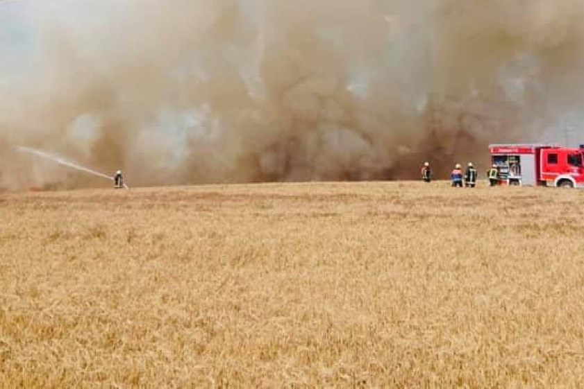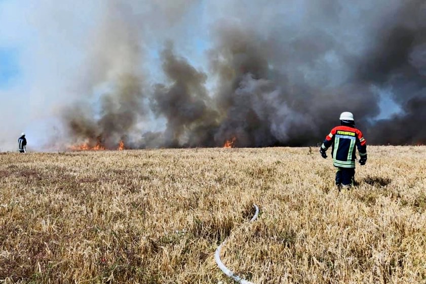 In der Gemeinde Rudelzhausen wurden über sieben Hektar Feld zum Raub der Flammen. Die Löscharbeiten gestalteten sich zunächst schwierig.