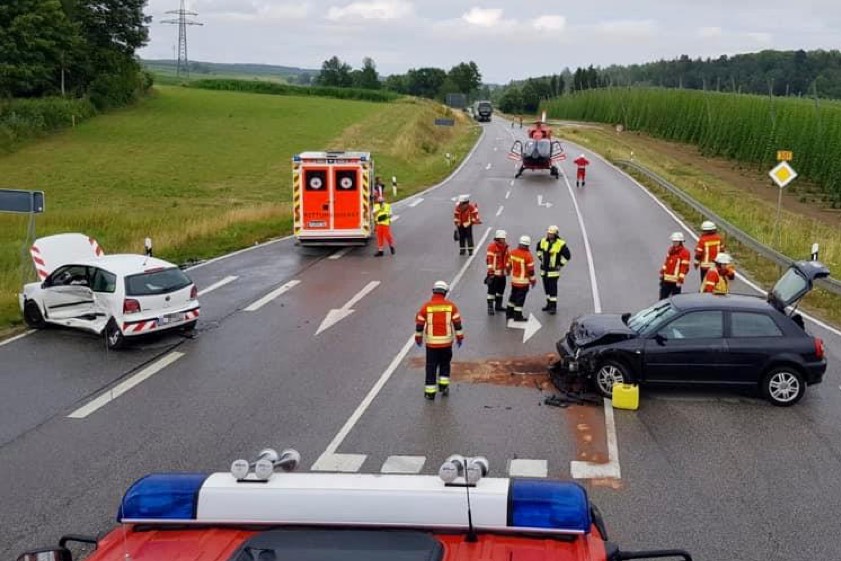 (ty) Im Gemeinde-Bereich von Au in der Hallertau hat sich am gestrigen Nachmittag gegen 14.30 Uhr ein heftiger Verkehrsunfall ereignet. Wegen eines Vorfahrts-Verstoßes krachten auf der Bundesstraße B301 zwei Fahrzeuge zusammen. Dabei wurden insgesamt drei Personen verletzt. Eines der Unfall-Opfer musste mit dem Rettungs-Hubschrauber in eine Klinik geflogen werden. Die anderen beiden Verletzten wurden vom Rettungsdienst in Krankenhäuser gefahren.