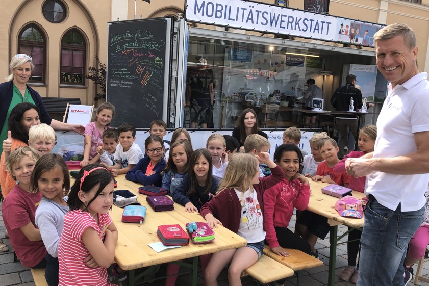 Eine Woche lang hatte sich das Mobilitäts-Team mit seinem Mobilitäts-Container auf dem Hauptplatz vor dem Rathaus mit Bürgern getroffen. Dabei wurde informiert, beraten und diskutiert sowie für ein aktives Mitmachen bei der Initiative "mitanand mobil" geworben. Bei der Abstimmung konnte jeder Teilnehmer seine Meinung darüber kundtun, in welchem Ortsteil die Mobilitäts-Werkstatt ab Herbst aufgebaut werden soll.