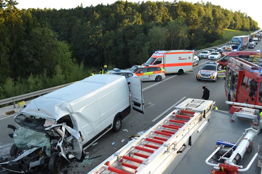 Er krachte heute früh mit seinem Kastenwagen ins Heck eines Sattelzugs. Autobahn gut drei Stunden komplett gesperrt.