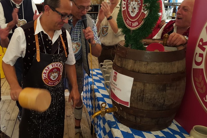 (ty) In Reichertshofen hat am heutigen Abend das 50. Paarfest begonnen. Zunächst traf man sich am Herzog-Heinrich-Platz, wo auch Freibier ausgeschenkt wurde. Gegen 18 Uhr setzte sich der Tross in Gang und marschierte zum Festplatz. Dort zapfte Bürgermeister Michael Franken (JWU) das erste Fass Gerstensaft an – und damit war das Spektakel auch offiziell eröffnet. Seit 19 Uhr läuft nun der "Abend der Vereine", dazu spielen die Reichertshofener Musikanten auf. Gefeiert wird bis einschließlich Montag, nachfolgend das Programm im Überblick.