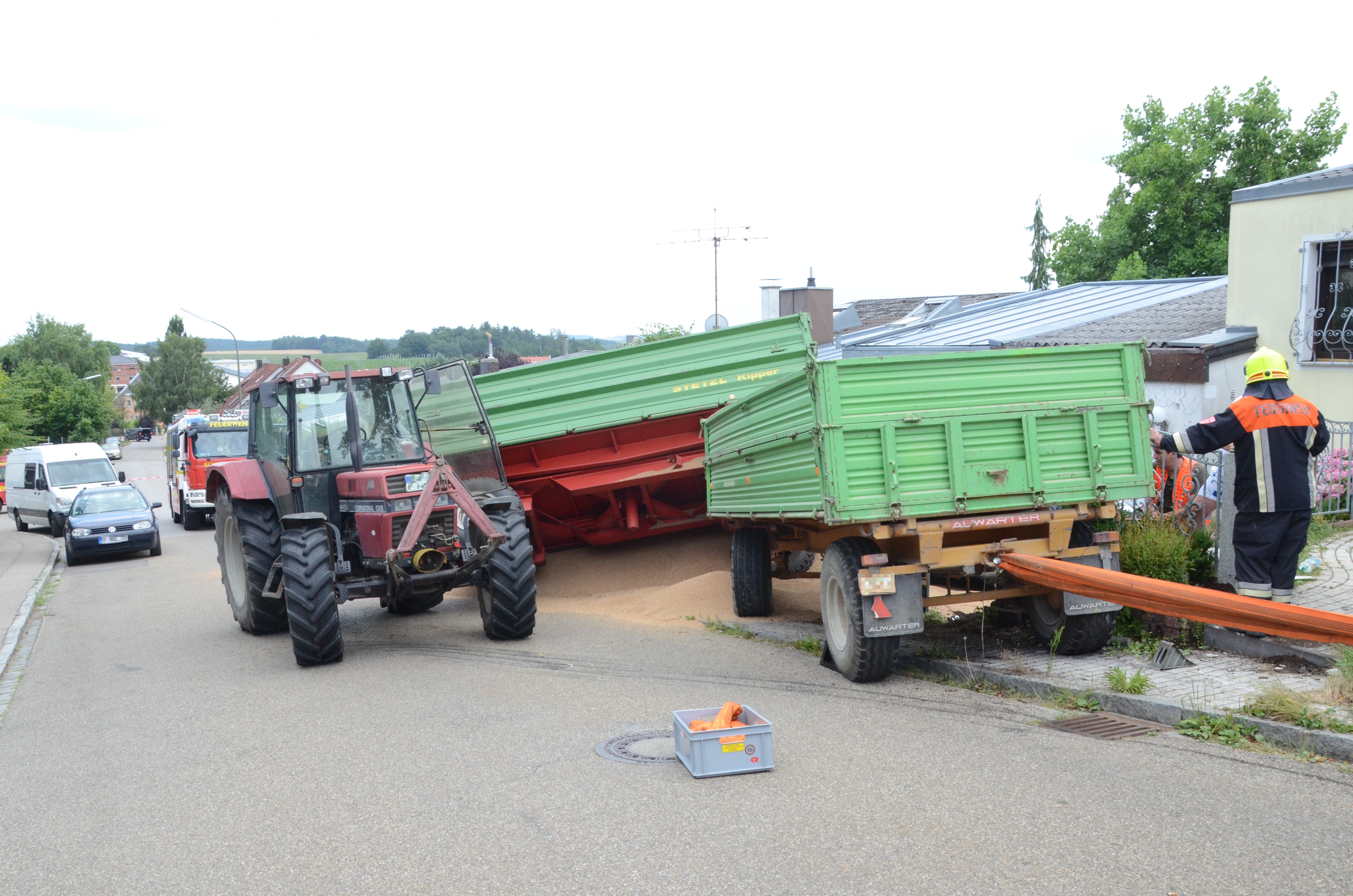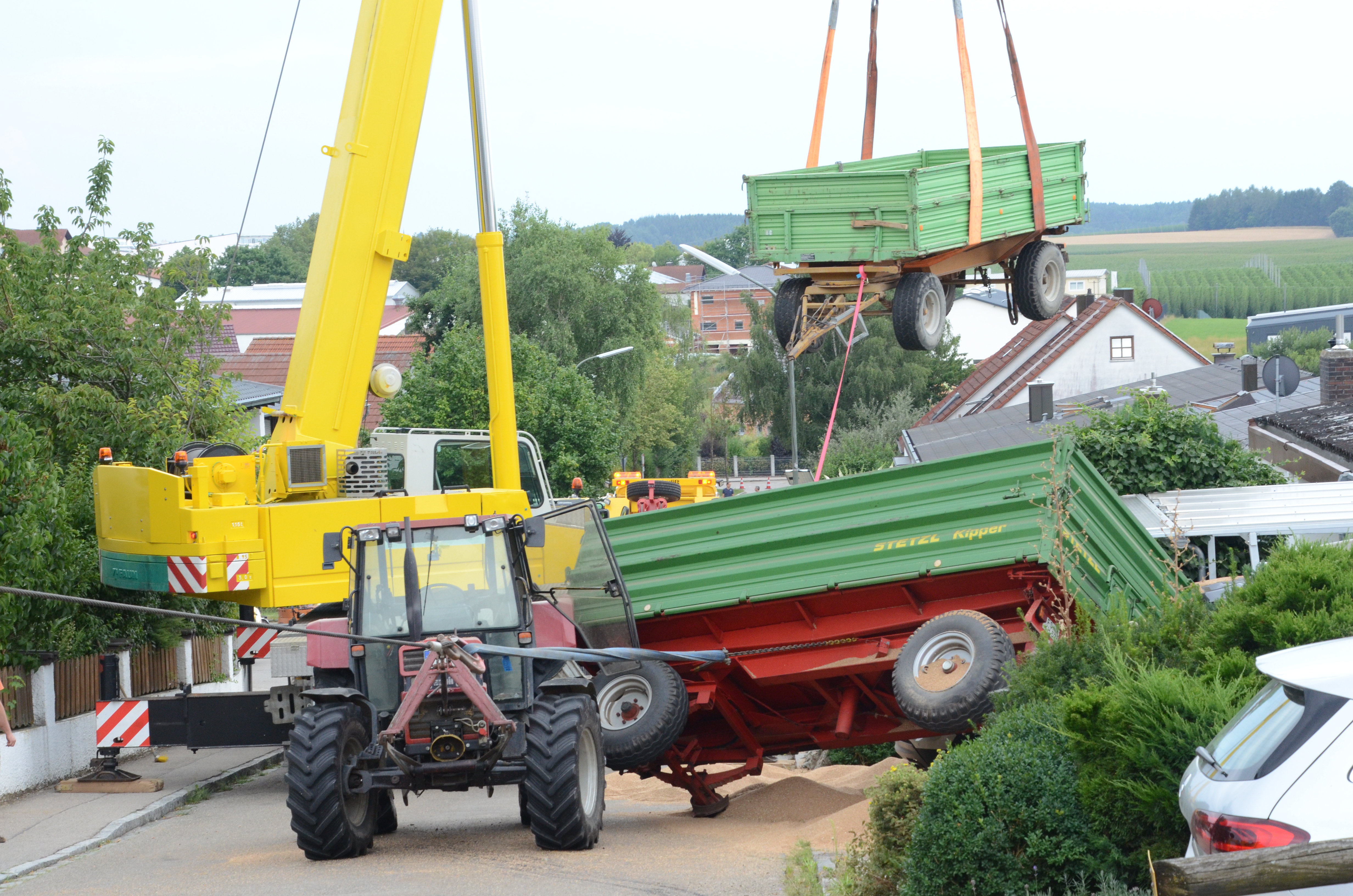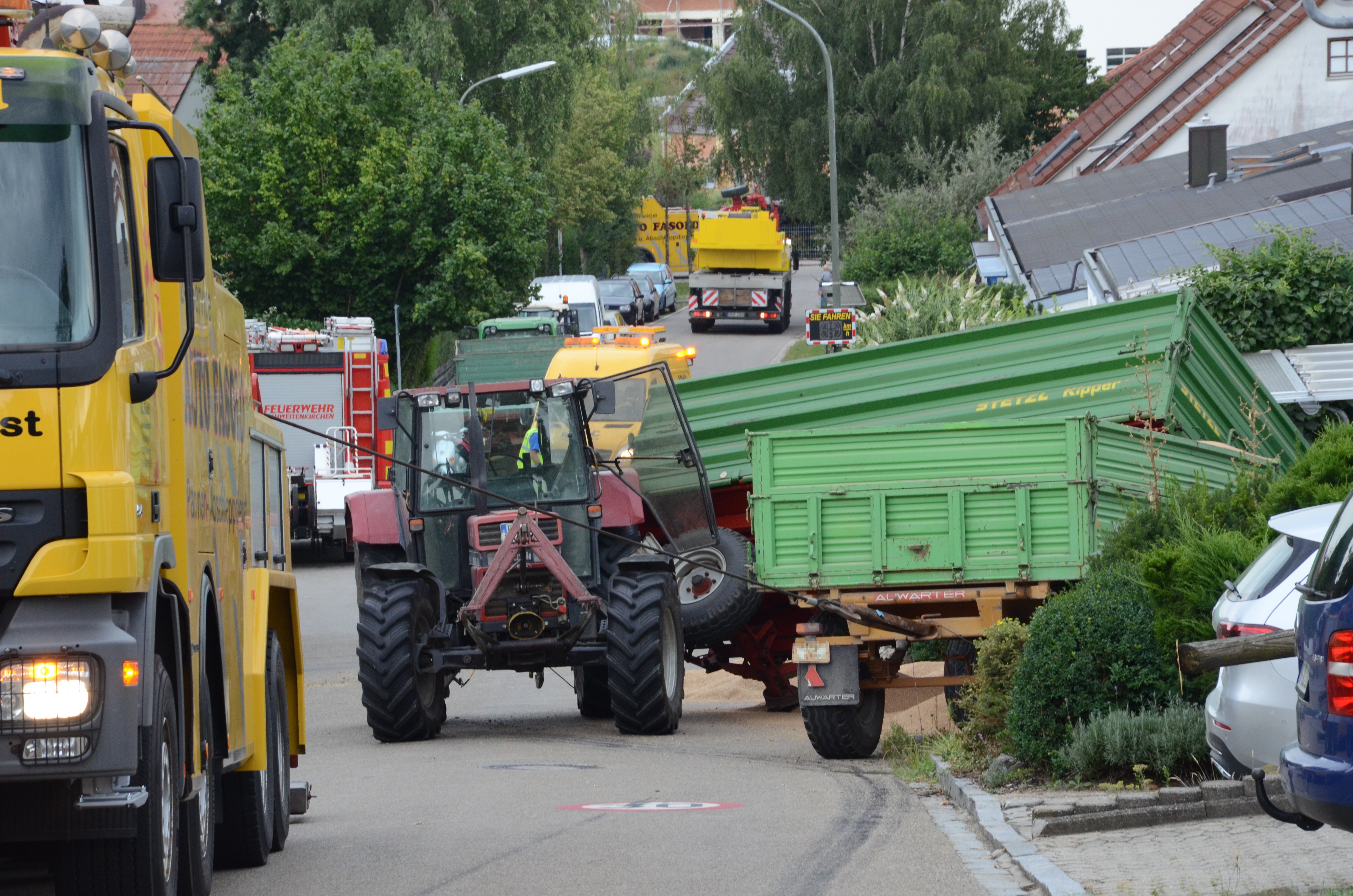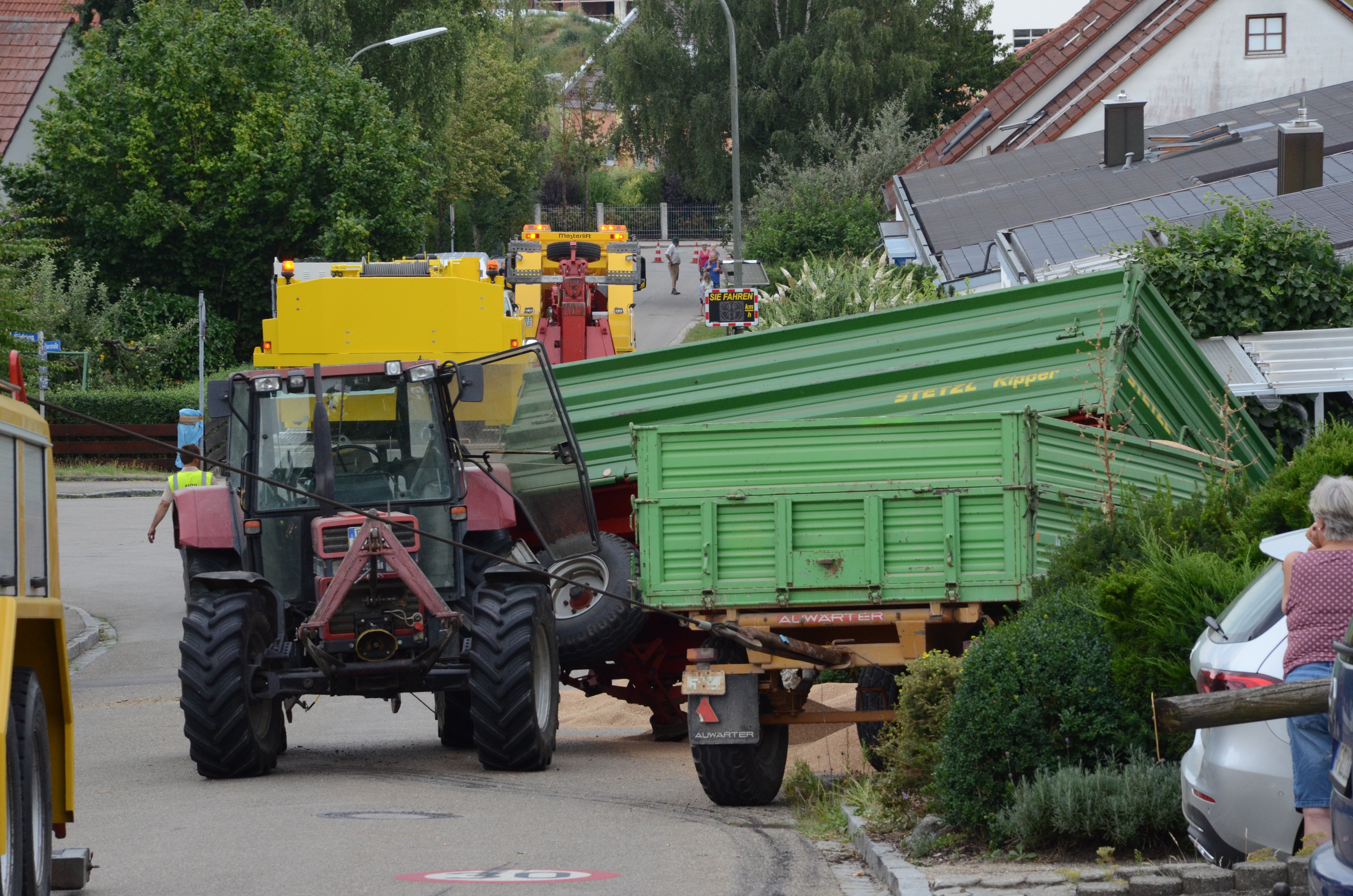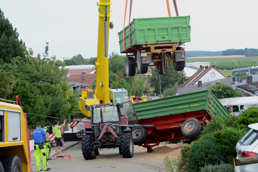 Spektakulärer Unfall mit Traktor-Gespann in Schweitenkirchen