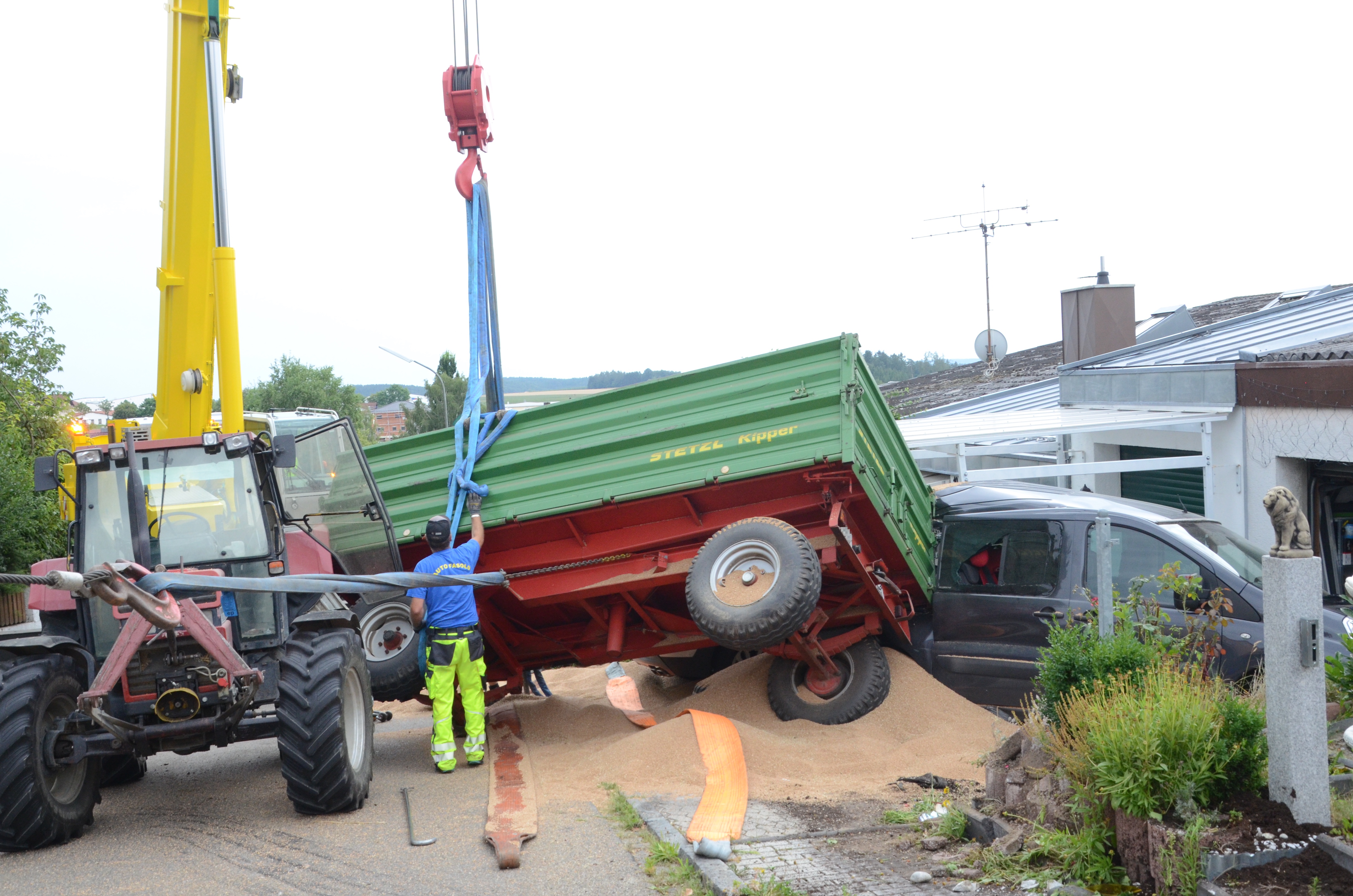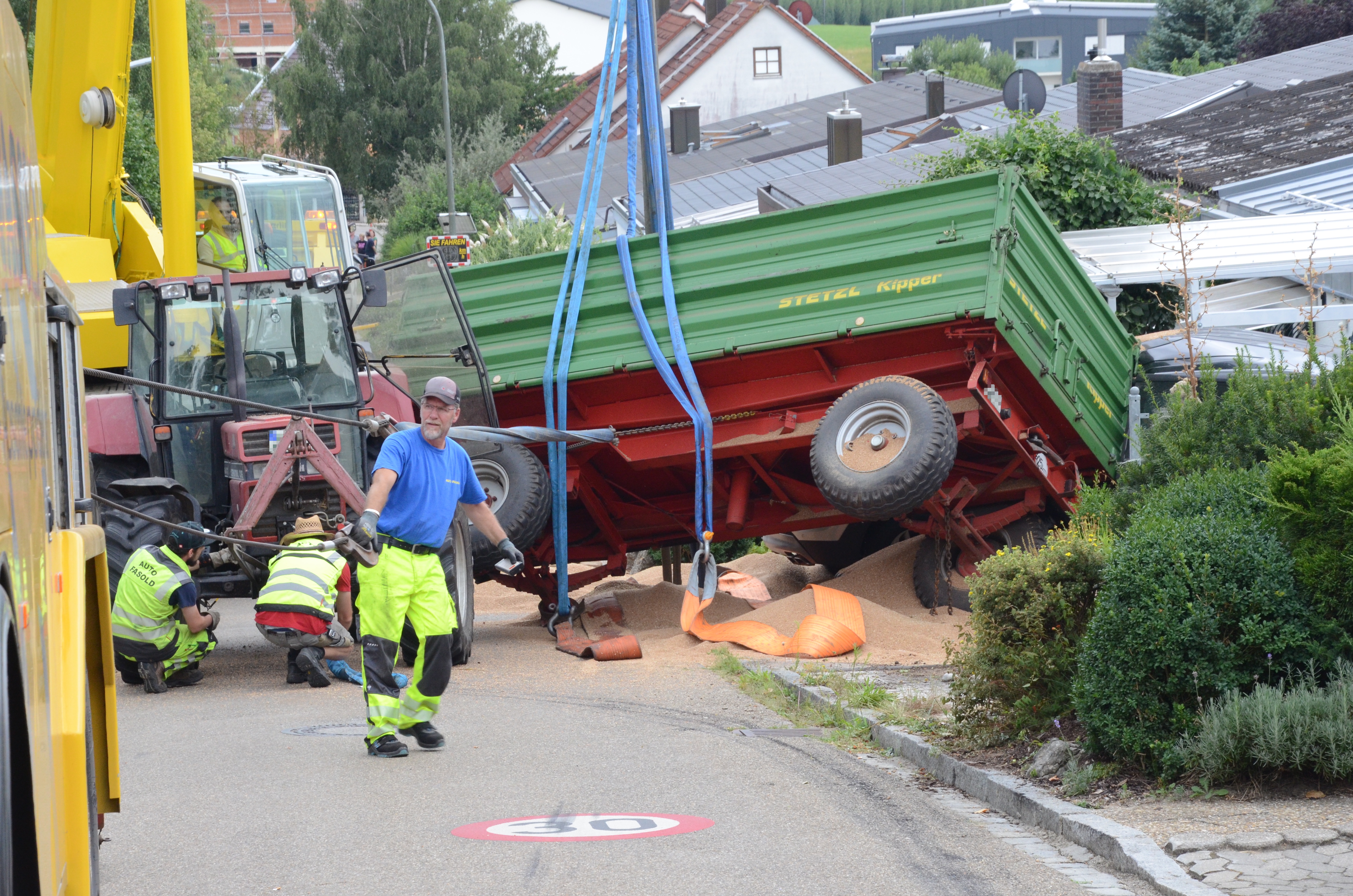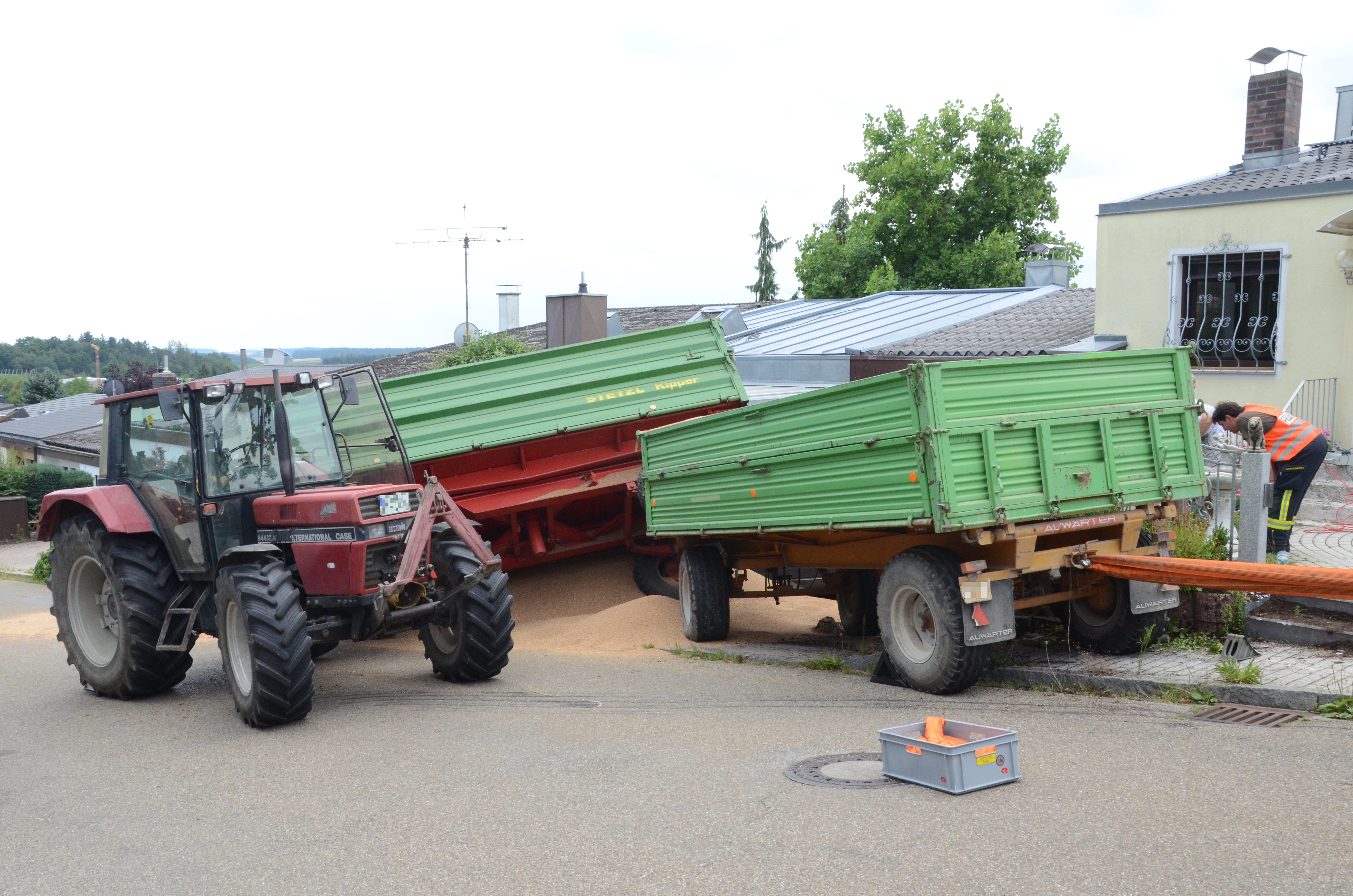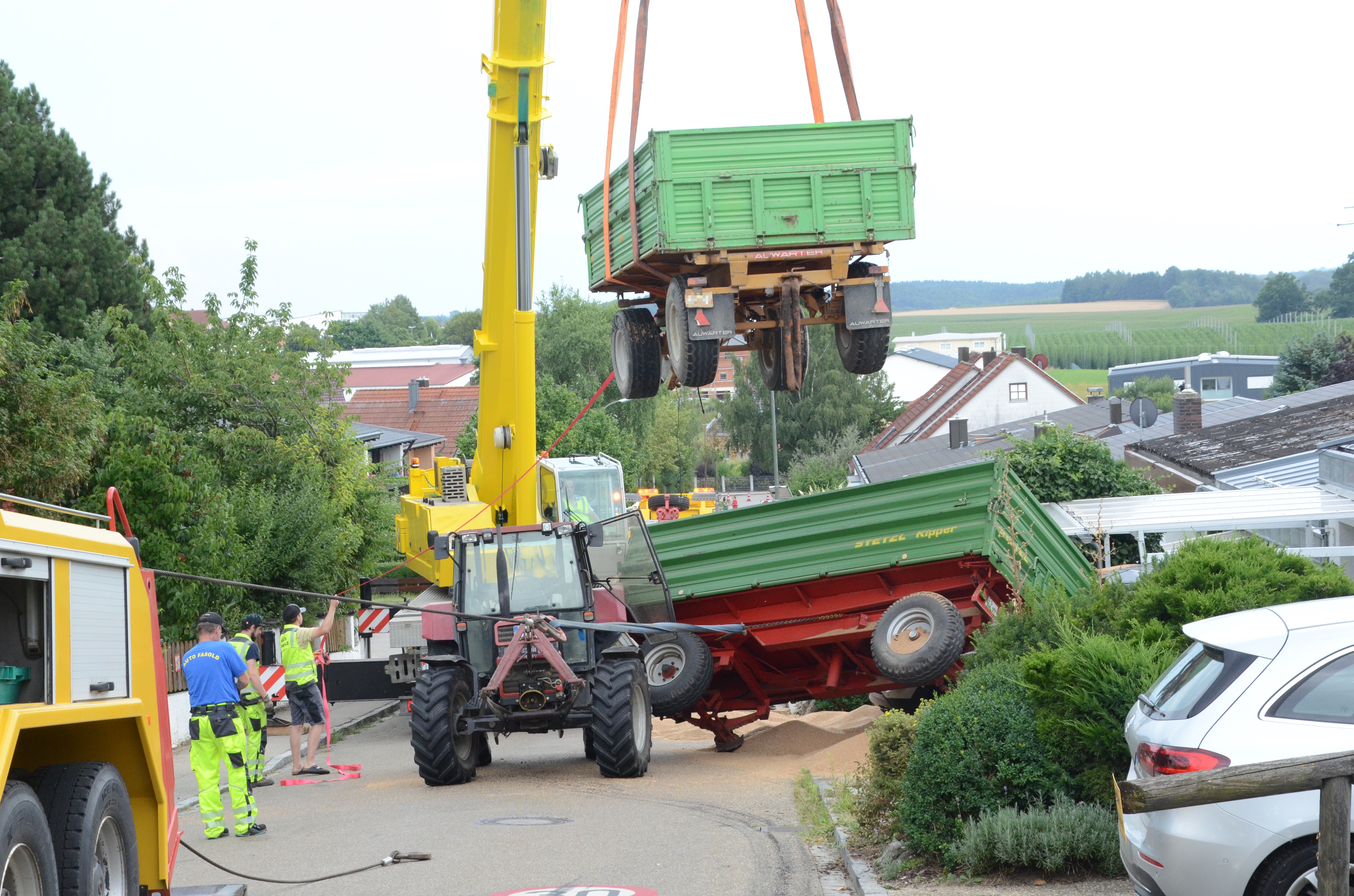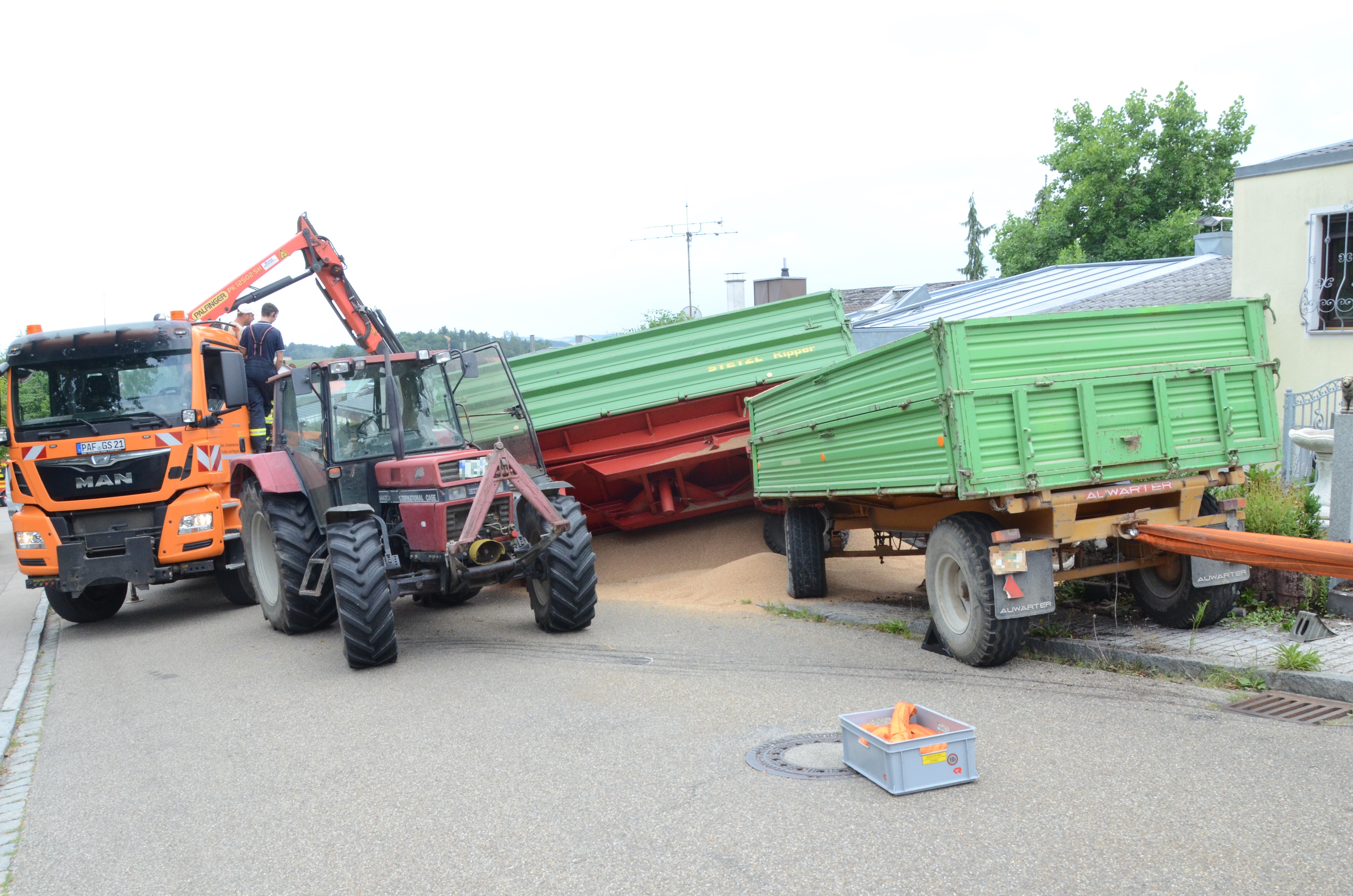 Spektakulärer Unfall mit Traktor-Gespann in Schweitenkirchen