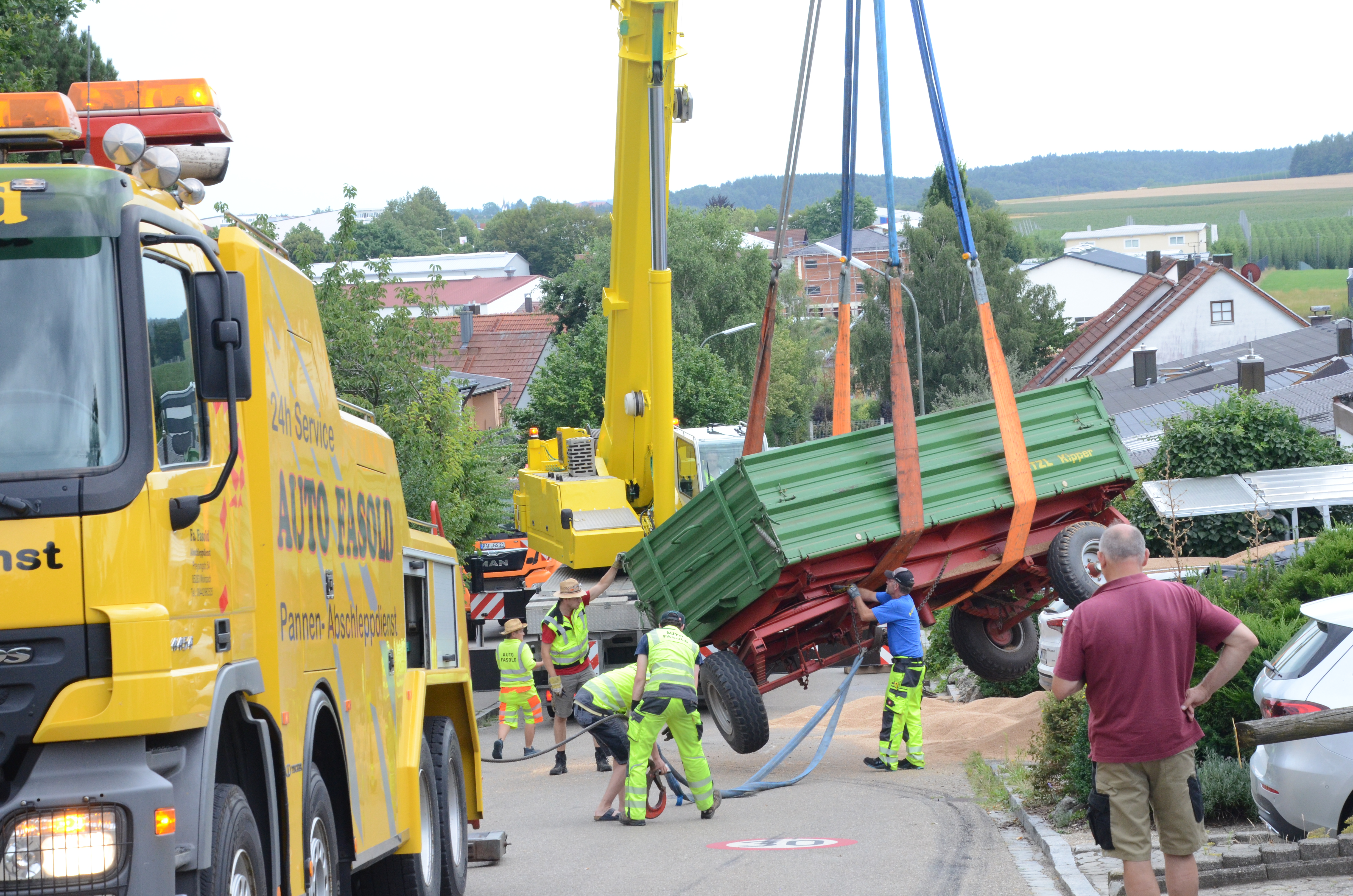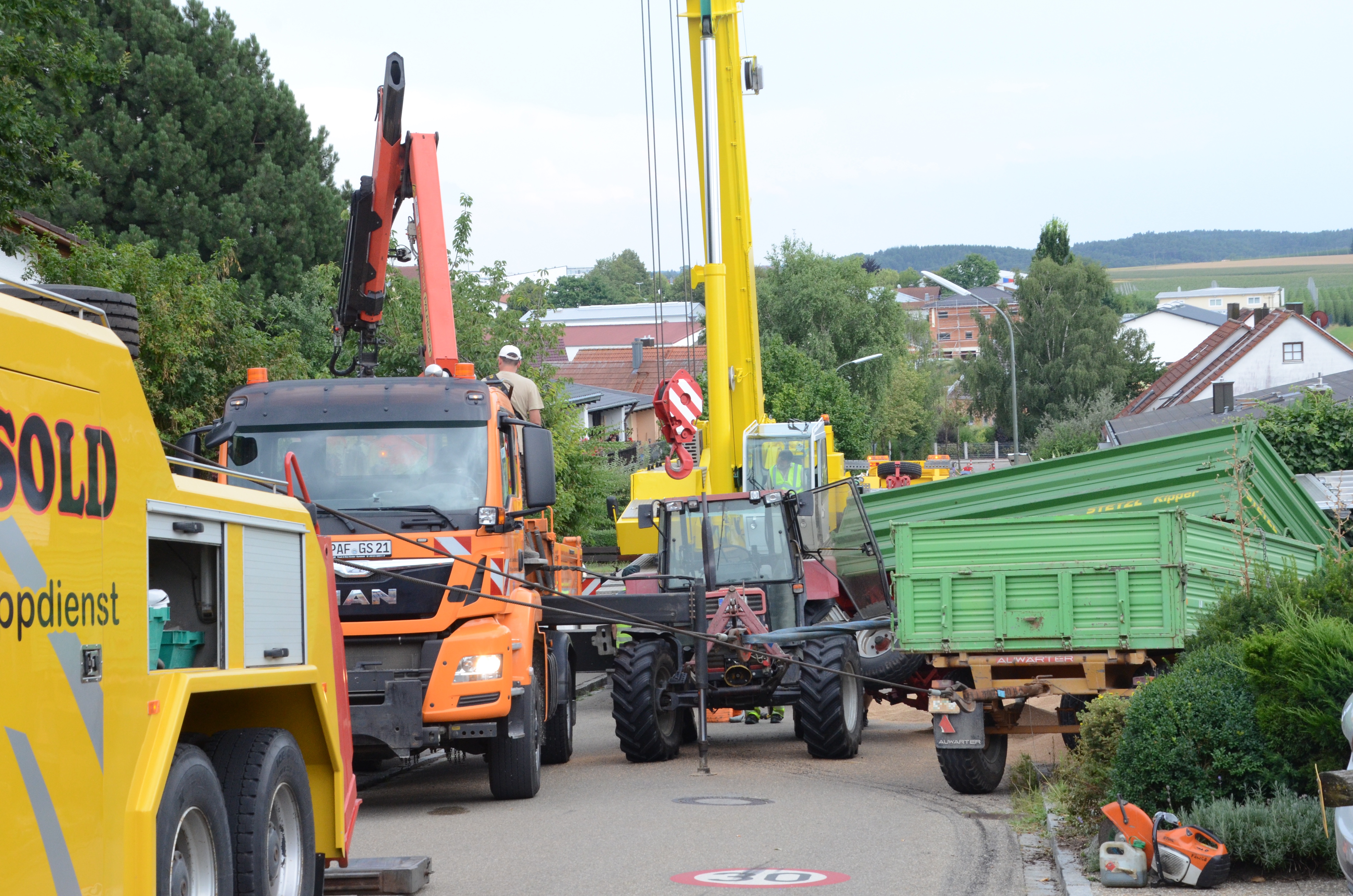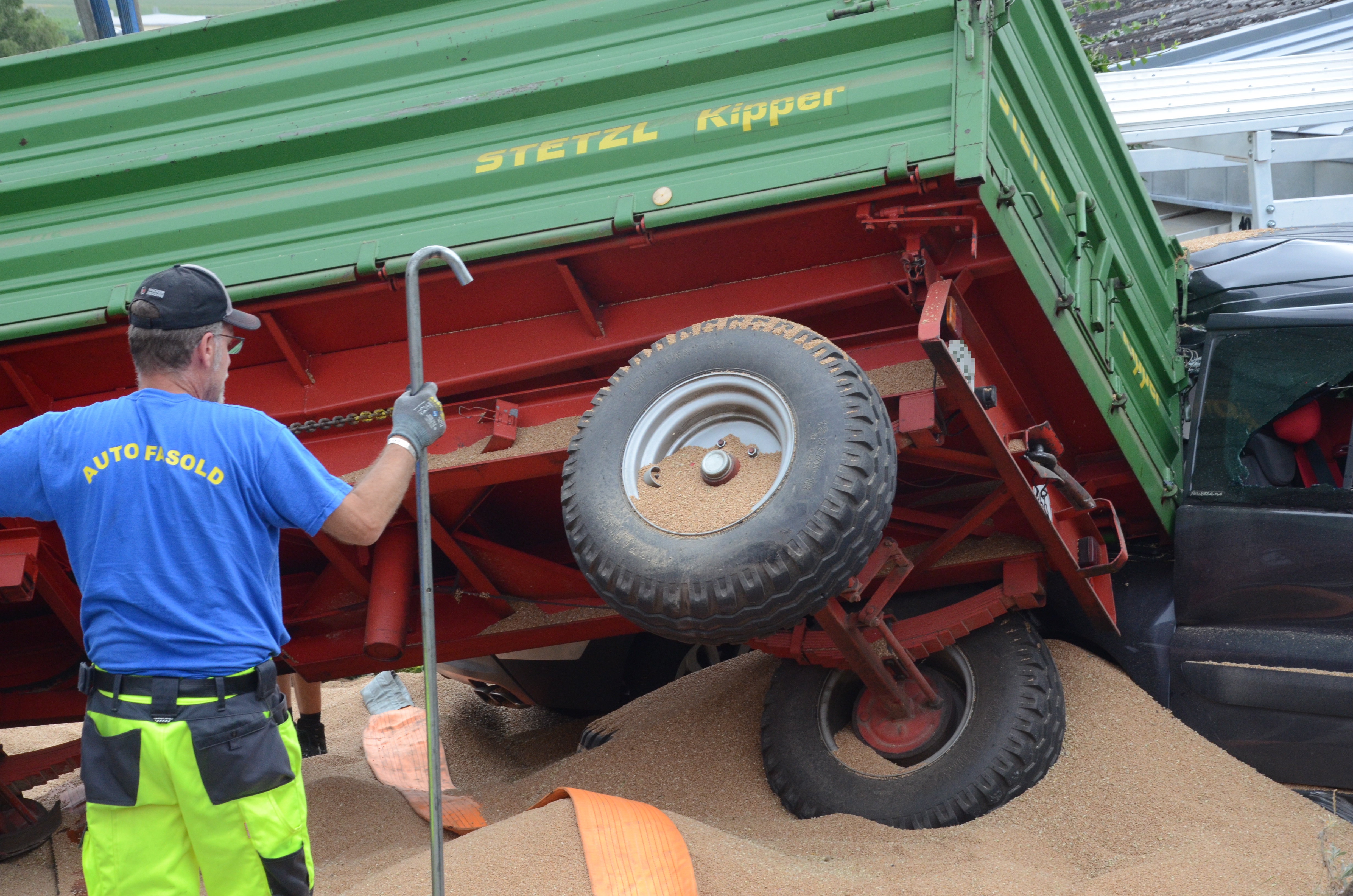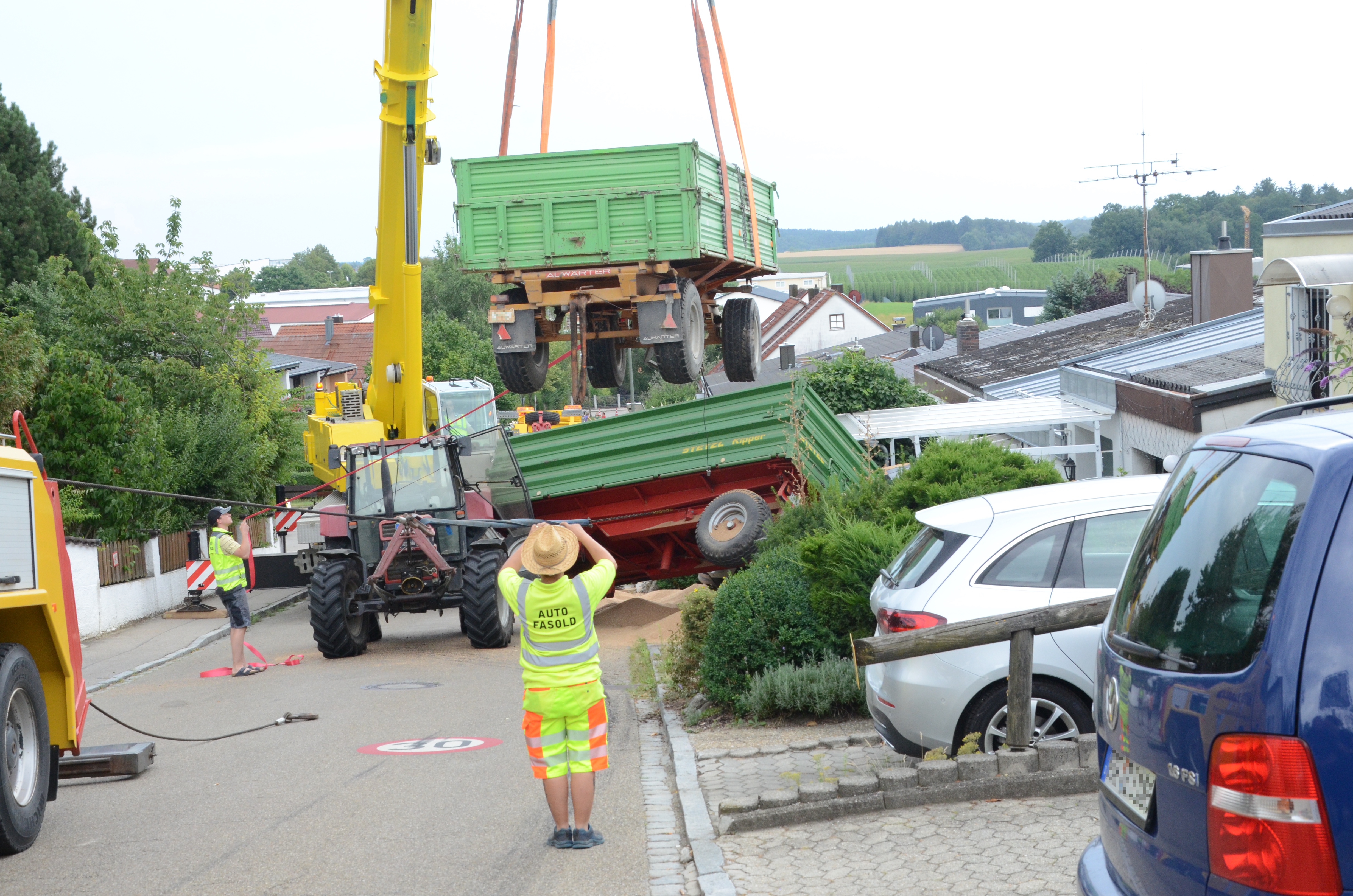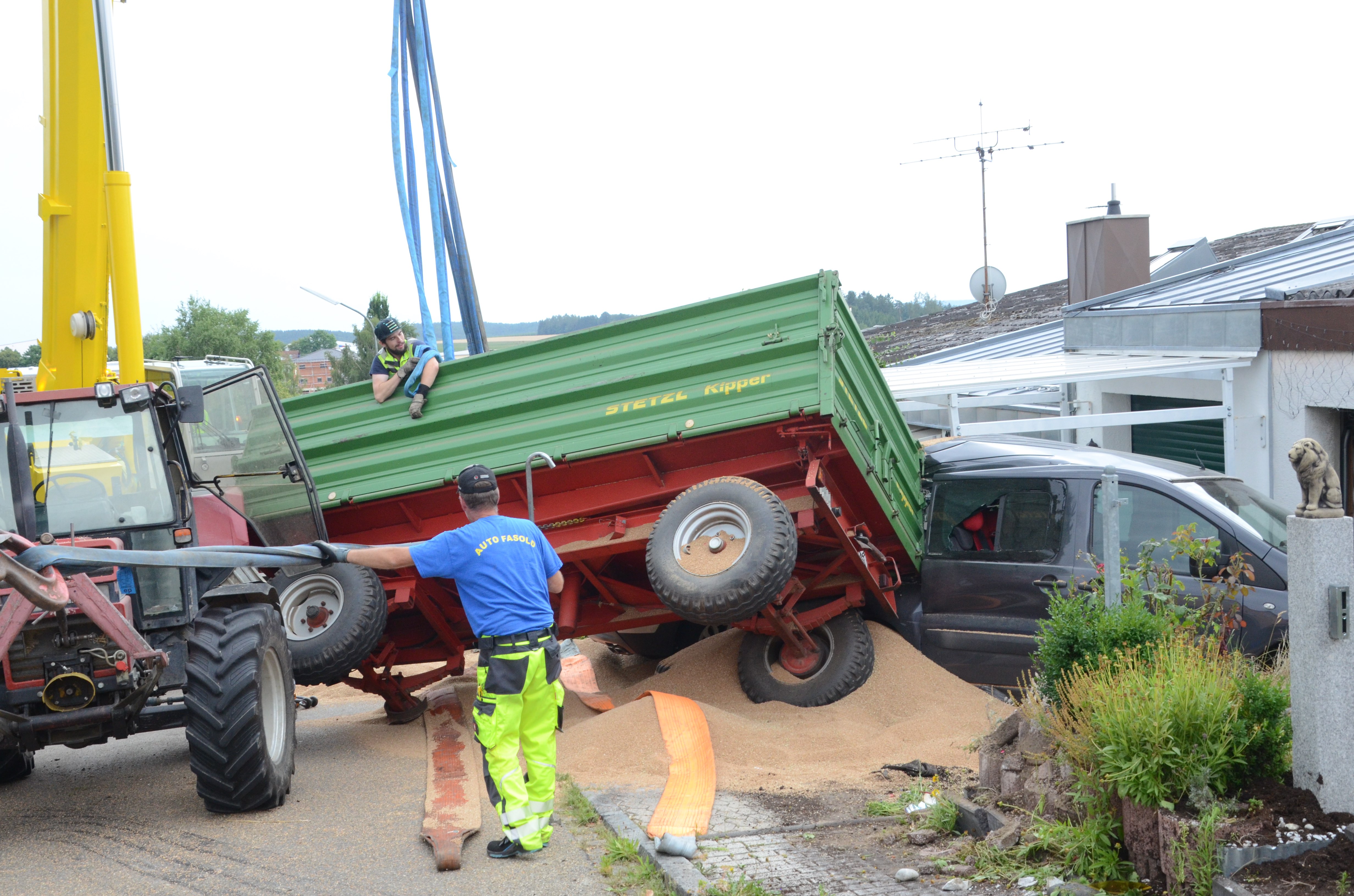 Spektakulärer Unfall mit Traktor-Gespann in Schweitenkirchen
