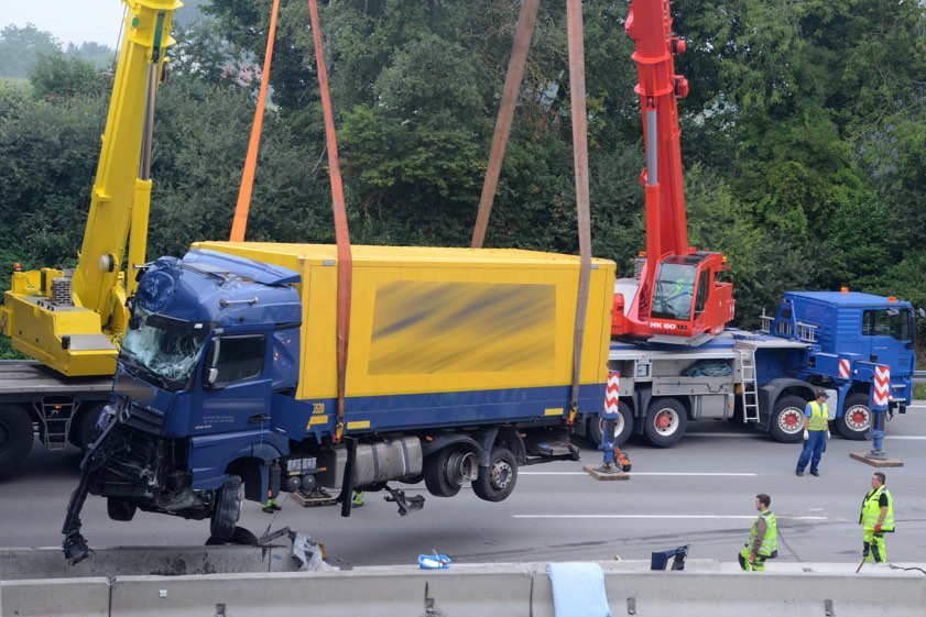 Der Lastwagen-Lenker, nach Angaben der Polizei ein 54-jähriger Kraftfahrer aus Erding, wurde bei dem Crash in seinem Führerhaus eingeklemmt. Der Mann habe schwere Verletzungen im Becken- und Oberschenkel-Bereich erlitten, berichtete ein Polizei-Sprecher am Nachmittag. Nachdem der Verunglückte aus dem Lastwagen befreit und vor Ort notärztlich versorgt worden war, wurde er mit einem angeforderten Rettungs-Hubschrauber in eine Universitäts-Klinik geflogen.