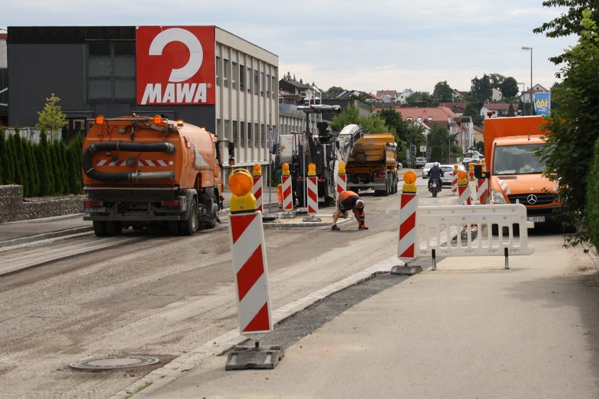 Bau-Arbeiten zur Schaffung der Fahrbahn-Verengung in der Hohenwarter Straße.