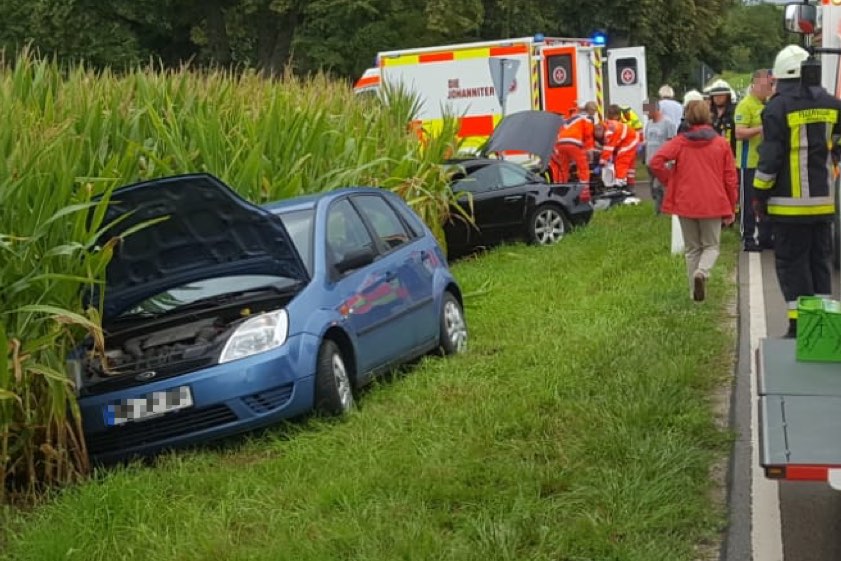 Dabei übersah er nach Angaben der Polizei einen von rechts kommenden, vorfahrtsberechtigten Mercedes, mit dem ein 67-Jähriger auf der Kreisstraße in Richtung Pörnbach fuhr. "Im Einmündungs-Bereich kam es zum Zusammenstoß zwischen den Fahrzeugen, wobei der Ford im Straßengraben und der Mercedes in einem Maisfeld auf der rechten Seite neben der Straße zum Stehen kamen", fasst ein Sprecher der Pfaffenhofener Polizeiinspektion zusammen.