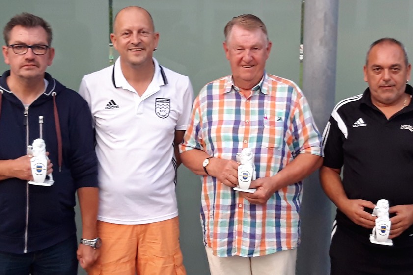 (ty) Im Rahmen der jüngsten Monats-Versammlung hat der stellvertretende Obmann der Schiedsrichter-Gruppe Pfaffenhofen, Michael Seidl (Foto oben, Zweiter von links) drei aktiven Fußball-Schiri-Kameraden zu deren runden Geburtstagen gratuliert: Walter Zerle vom TSV Paunzhausen (links) und Hans "Blacky" Schwarz vom TSV Jetzendorf rechts) feierten kürzlich ihren 50. Geburtstag, Hans Finkbeiner vom ST Scheyern (Zweiter von rechts) ist sogar mit 80 Lenzen noch als Schiri aktiv.