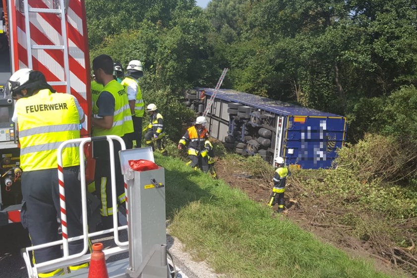 Die Fahrerin wurde offenbar von einer Wespe gestochen und verlor daraufhin die Kontrolle über ihren Sattelzug.
