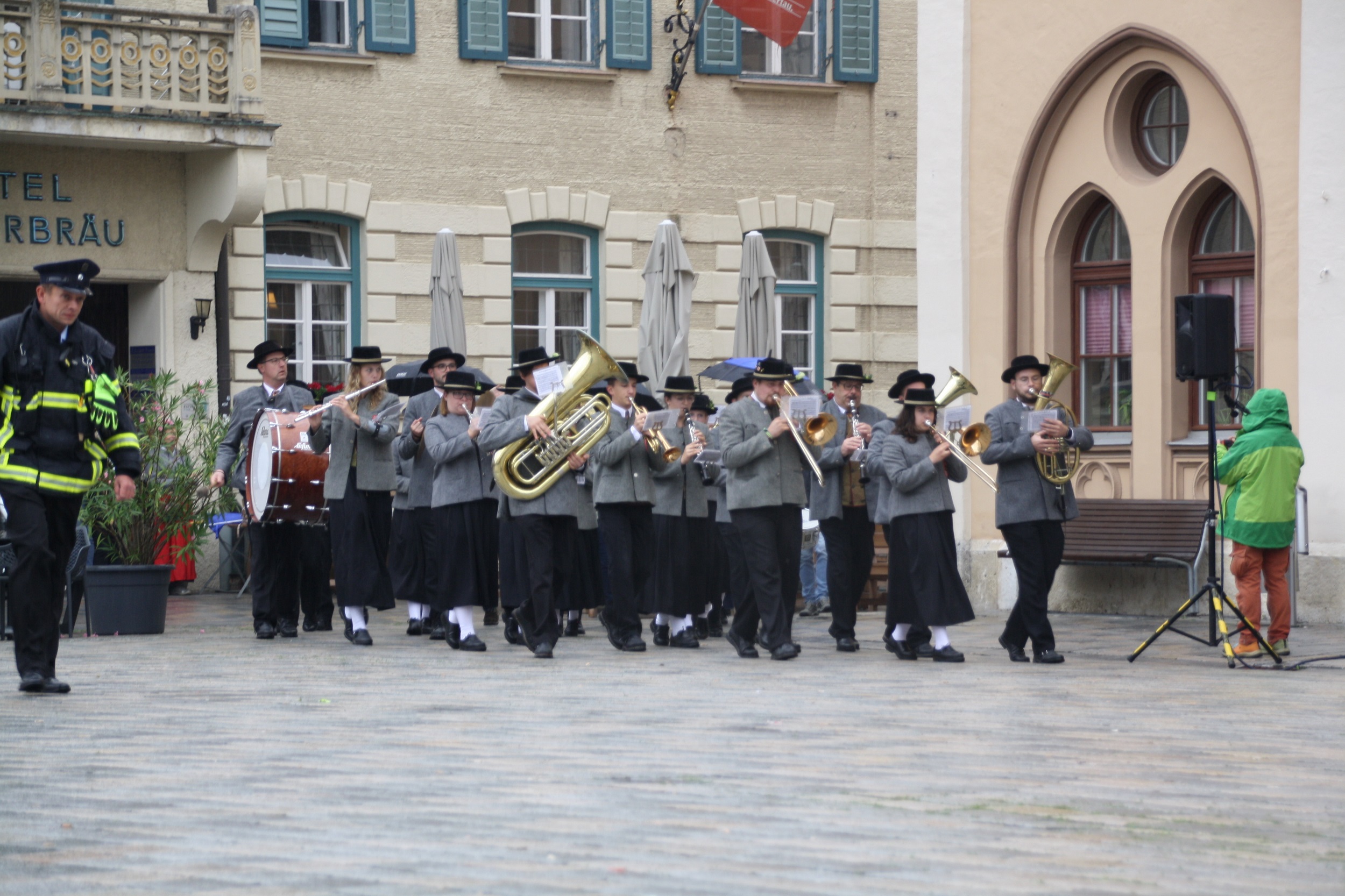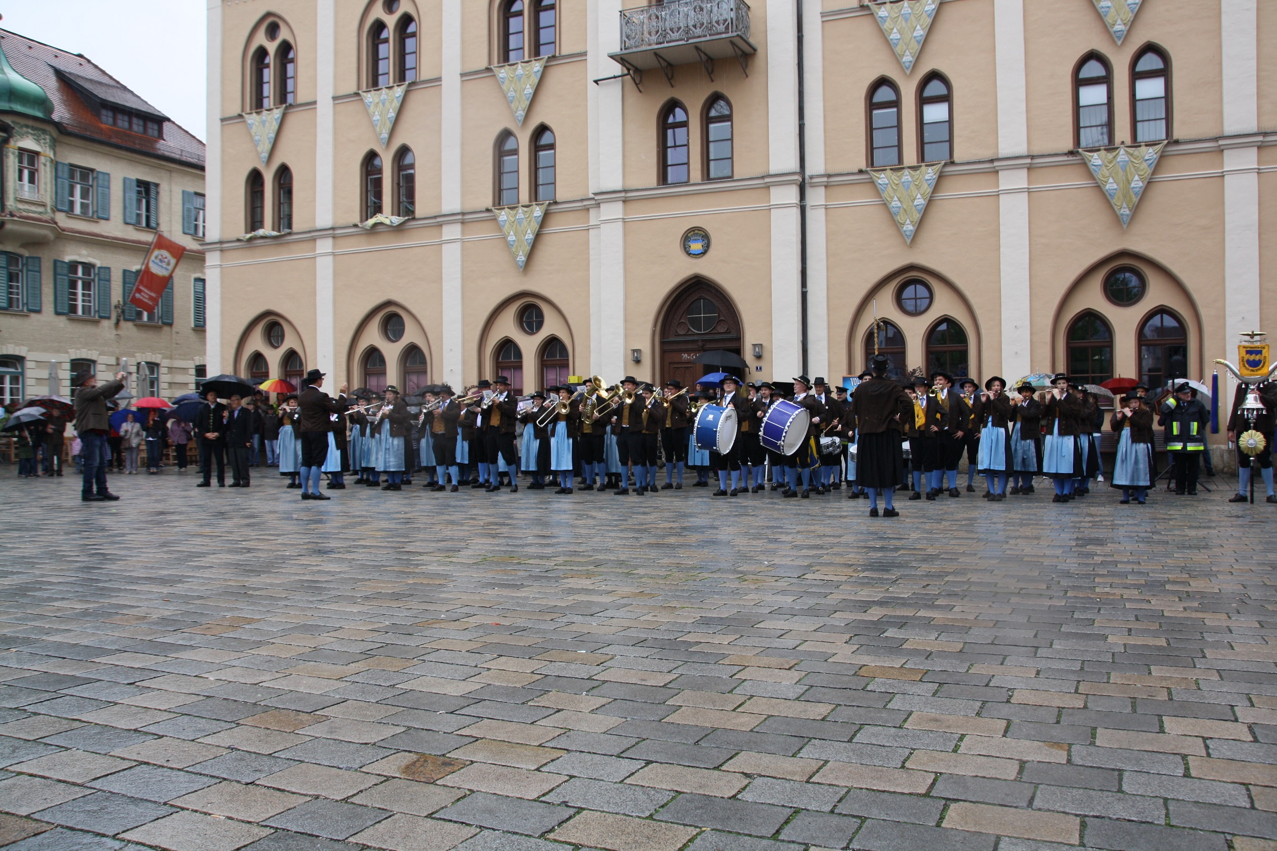 Nacheinander marschierten die Marktkapelle aus Wolnzach, die Blasmusik aus Aschheim, die Schleißheimer Schlosspfeifer, die Stadtkapelle aus Geisenfeld, die Kolpingia-Blaskapelle aus Gerolfing sowie die Pfaffenhofener Stadtkapelle und der hiesige Spielmannszug Pfaffenhofen auf dem Hauptplatz ein. "Dort gab es wegen des Regens ein zwar verkürztes, aber dennoch nicht minder stimmungsvolles Programm", lautet das Fazit aus dem Rathaus: "Jede Blaskapelle spielte nur ein, statt der sonst üblichen zwei Musikstücke."