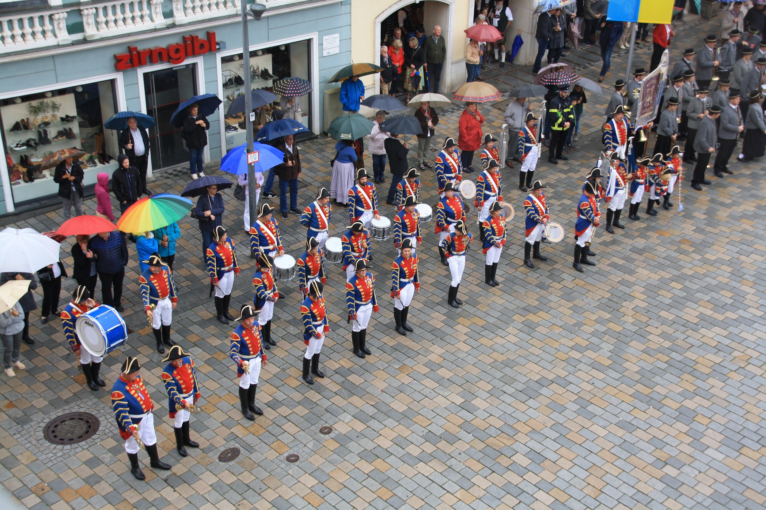 Bei strömendem Regen fand gestern das Volksfest-Standkonzert auf dem Hauptplatz statt. Impressionen in Bildern.
