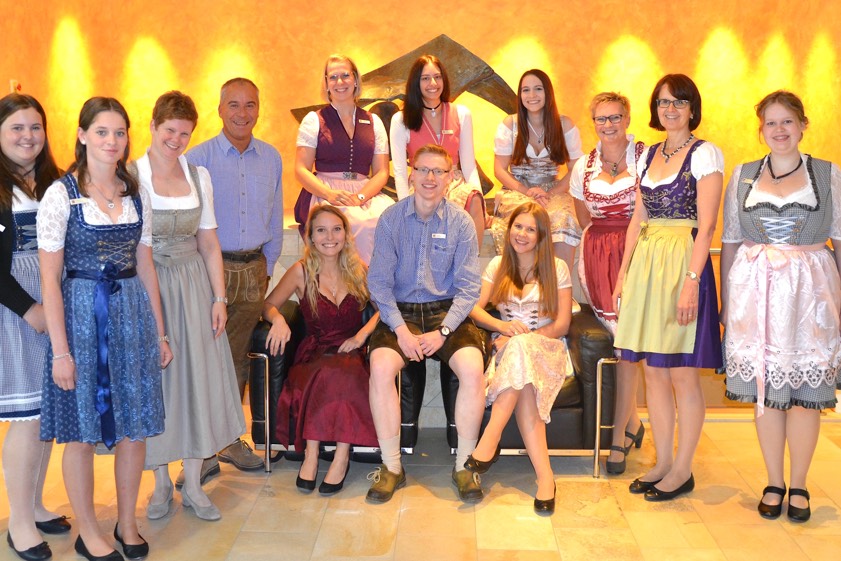 (ty) Ein nicht alltäglicher Anblick bietet sich den Kunden der Pfaffenhofener Sparkasse dieser Tage. Denn sie werden von Bank-Mitarbeitern empfangen, die in bayerischer Tracht gekleidet sind (Foto oben). Hintergrund ist das Volksfest, das noch bis 17. September in der Kreisstadt steigt. Auch für die letzten beiden Festtage, am Montag und Dienstag, hat der zuständige Marktbereichs-Leiter Bernhard Mayer seinen Mitarbeitern übrigens noch einmal Dirndl und Lederhose statt des üblichen Banker-Outfits "verordnet".