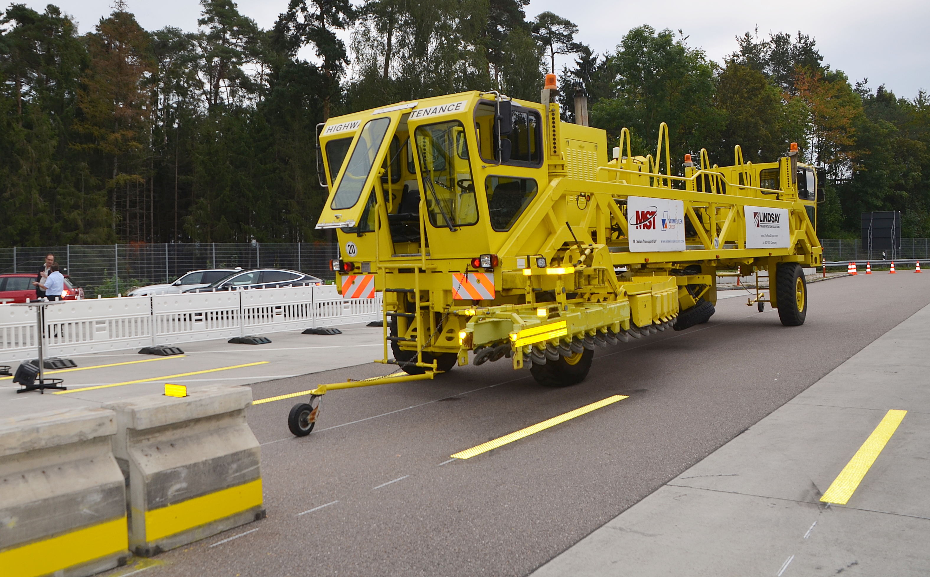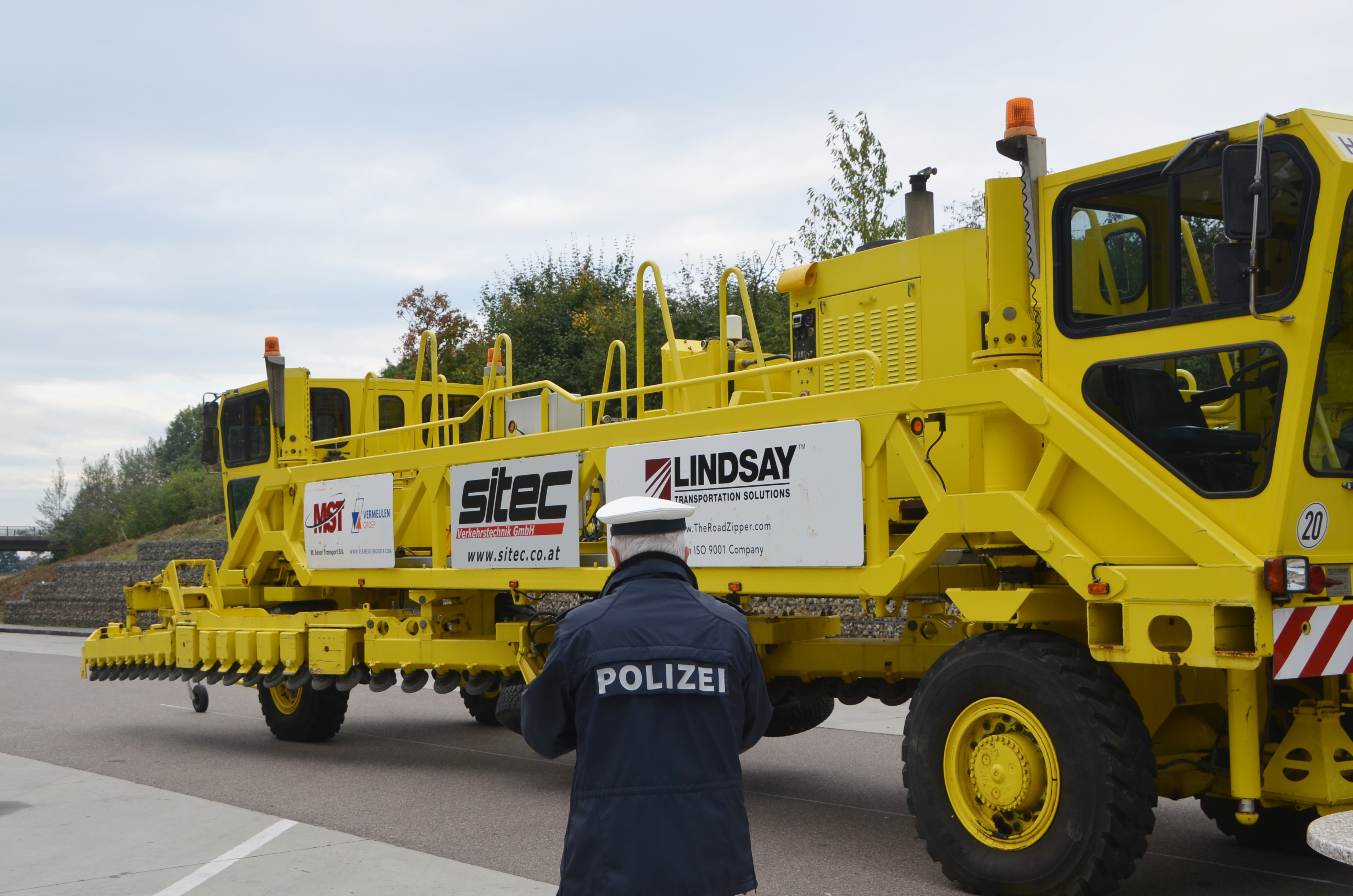 Die Road-Zipper haben sich bereits in Österreich und den Niederlanden im Einsatz bewährt, wie zu erfahren war. Heute gab es auf dem A9-Parkplatz sozusagen die Deutschland-Premiere, demnächst ist das System dann im Realbetrieb auf der Autobahn gefordert.