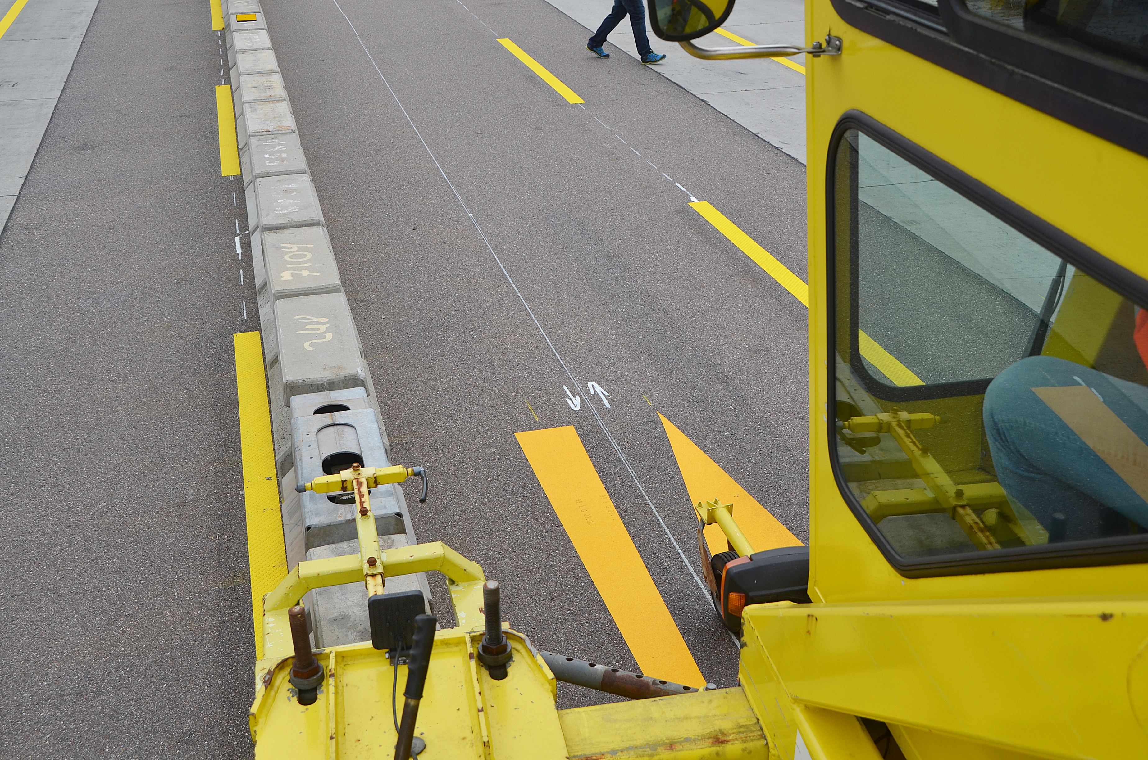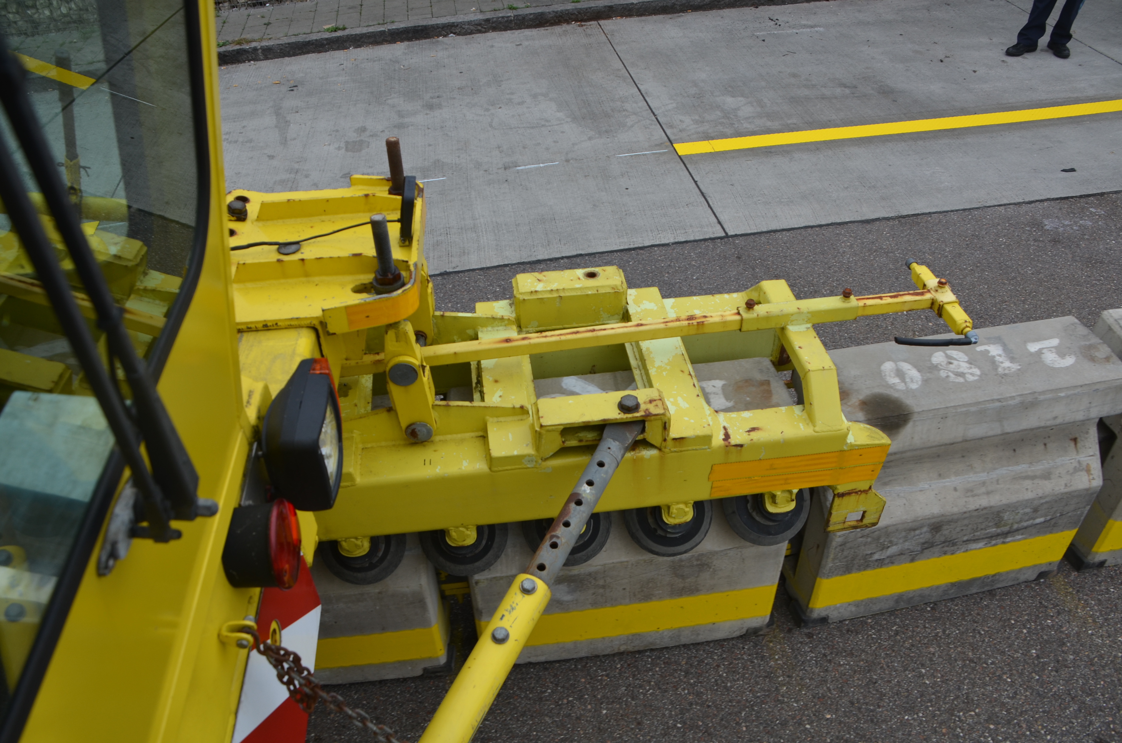 Abends beziehungsweise nachts wird dann wieder zurückgesetzt. Diese Wechsel werden dann mit der Road-Zipper-Maschine – an jeder Frontseite mit einem Fahrer besetzt – abgewickelt. Mit diesem Monstrum verschiebt man im fließenden Verkehr jeweils einen Meter lange, miteinander verbundene Betonschutzwand-Elemente. Das geschieht bei einer Fahr-Geschwindigkeit der Maschine von acht Kilometer pro Stunde. Die Fahrspuren können somit je nach Verkehrslage zur Verfügung gestellt werden. Außerdem sollen die Bauarbeiter vor der gefährlichen Sogwirkung der vorbeifahrenden Fahrzeuge geschützt werden.