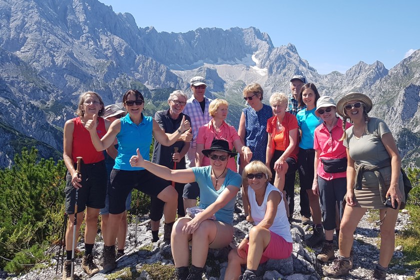 (ty) Eine abwechslungsreiche Rundtour im Wetterstein-Gebirge – und das bei traumhaften Bergwetter – haben 14 begeisterte Wanderer der DAV-Sektion Pfaffenhofen-Asch kürzlich unternommen (Foto oben). Von Hammersbach ging es auf das Kreuzeck zum Hupfleitenjoch. Beim Abstieg gab es eine gemütliche Einkehr bei der neuen Höllentalanger-Hütte und der Rückweg erfolgte durch die wildromantische Höllental-Klamm. Geführt wurde die Wanderung von DAV-Wanderleiterin Mathilde Mader.