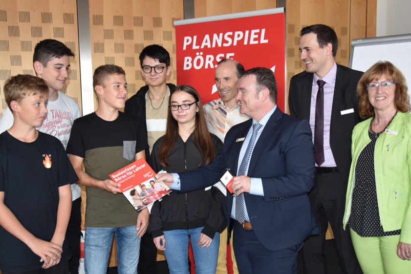 Danach erhielten die Vertreter der Teams die Wettbewerbs-Unterlagen ausgehändigt. Damit sind sie nun bereit für den Börsenspiel-Start am 25. September. Das "Planspiel Börse" ist ein Online-Wettbewerb, bei dem die Schüler risikolos ihr virtuelles Kapital einsetzen und die Mechanismen des Börsenhandels zehn Wochen lang kennenlernen können.