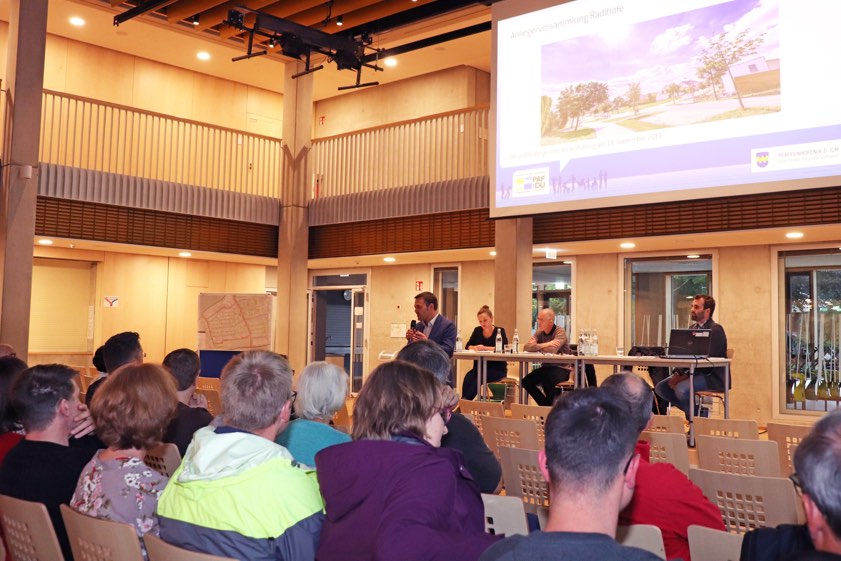 Anträge auf Maßnahmen zur Verkehrs-Beruhigung auf einzelnen Straßen im Bereich "Radlhöfe" hat es nach Angaben der Stadtverwaltung bereits mehrere gegeben. Um statt eines "Flickerlteppichs" aber eine einheitliche Lösung zu bekommen, favorisiert man im Rathaus ein Gesamtkonzept für das ganze Wohngebiet. Dieses wurde bei der Info-Veranstaltung am Donnerstag in der Aula der Grund- und Mittelschule vorgestellt und diskutiert. Im kommenden Monat will die Stadtverwaltung nun die Betroffenen anschreiben und – als Grundlage für eine spätere Entscheidung im Stadtrat – über die Erprobung einer Verkehrs-Veruhigung abstimmen lassen. Denn, so Bürgermeister Herker: "Es macht nur Sinn, wenn die Anwohner es auch wollen."
