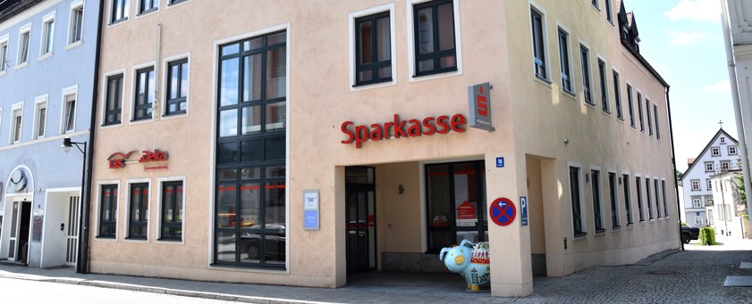 Bis 1937 waren die Geschäftsräume weiter im "Alten Rathaus" am Marktplatz untergebracht. In dieser Zeit wurde die Sparkasse von Zweigstellenleiter Grabner und ab 1934, schon als Hauptzweigstelle, von Inspektor Hager geleitet. 1937 erwarb die Sparkasse dann ein eigenes Geschäfts-Gebäude am heutigen Standort in der Preysingstraße 10. Nach mehreren Renovierungen und Modernisierungen wurde das Gebäude 2004 schließlich abgerissen und durch einen Neubau ersetzt.