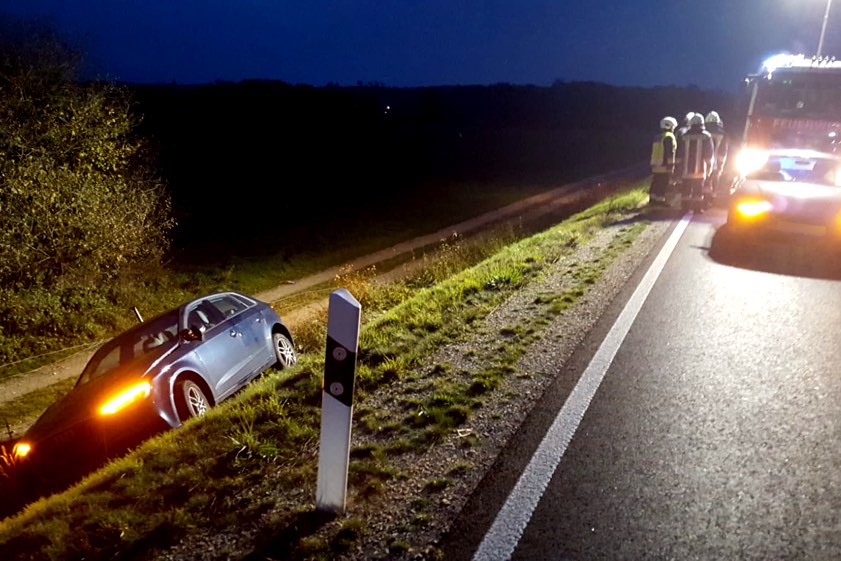 28-jähriger Audi-Fahrer hatte angeblich gesundheitliche Probleme: Er landete mit seinem Pkw im Graben.