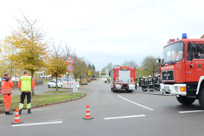 (zel) Ein größeres Aufgebot von Einsatzkräften musste am heutigen Vormittag in Hohenwart anrücken, weil bei Erdarbeiten eine Gasleitung beschädigt worden war. Das Malheur passierte im Bereich der Schulstraße, nur einen Steinwurf entfernt von Schule und Kindergarten. Eine Gefahr für die Bevölkerung bestand nach Angaben der Polizei jedoch nicht. Allerdings musste die Schulstraße gesperrt werden und der Unterricht für die Kinder auf dem angrenzenden Verkehrs-Übungsplatz wurde ausgebremst.
