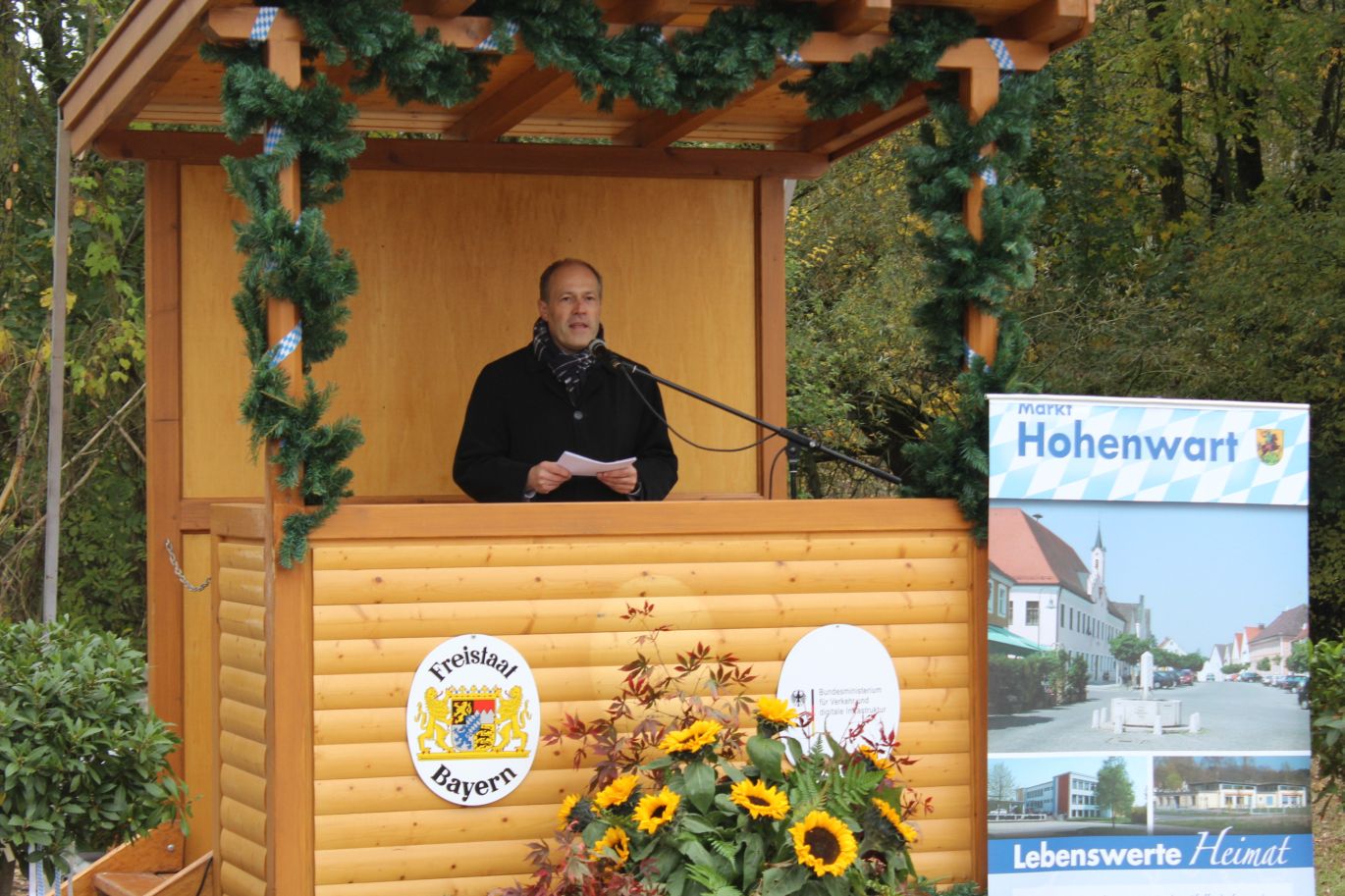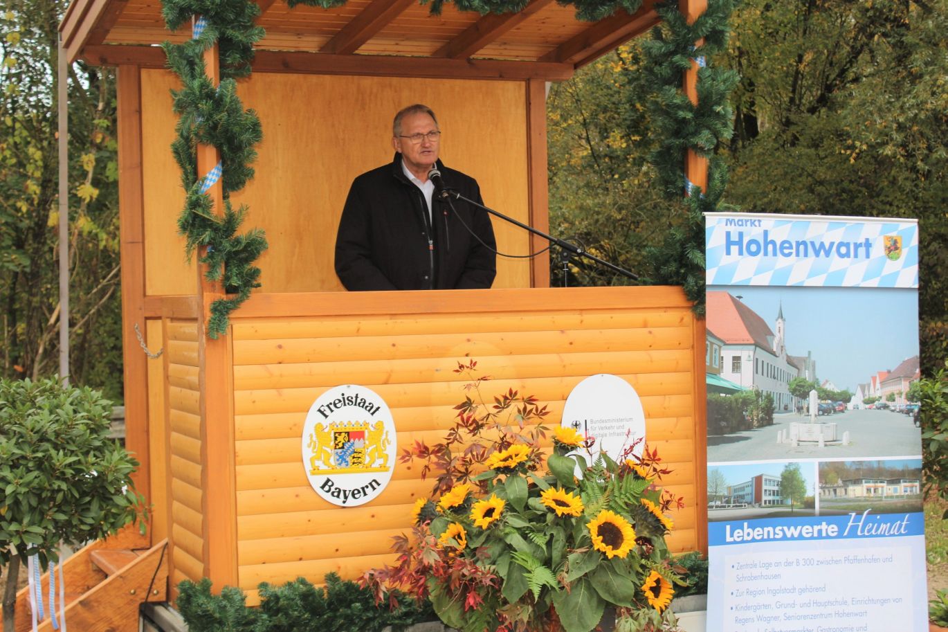 (ty) Nach Jahrzehnten des Hoffens und Wartens war es nun endlich soweit: Obwohl die ersten Baumaßnahmen zur Errichtung der B300-Umfahrung des Hohenwarter Ortsteil Weichenried bereits seit einigen Wochen laufen, startete das Projekt nun auch offiziell mit einem feierlichen Spatenstich vor Ort (Fotos). Zu den geladenen Gästen gesellten sich auch etliche Bürger der Gemeinde. Nach den Reden von Bürgermeister Manfred Russer (CSU), Landrat Martin Wolf (CSU) und dem Leiter des staatlichen Bauamts Ingolstadt, Stephan Blauth, folgte der symbolische Spatenstich.