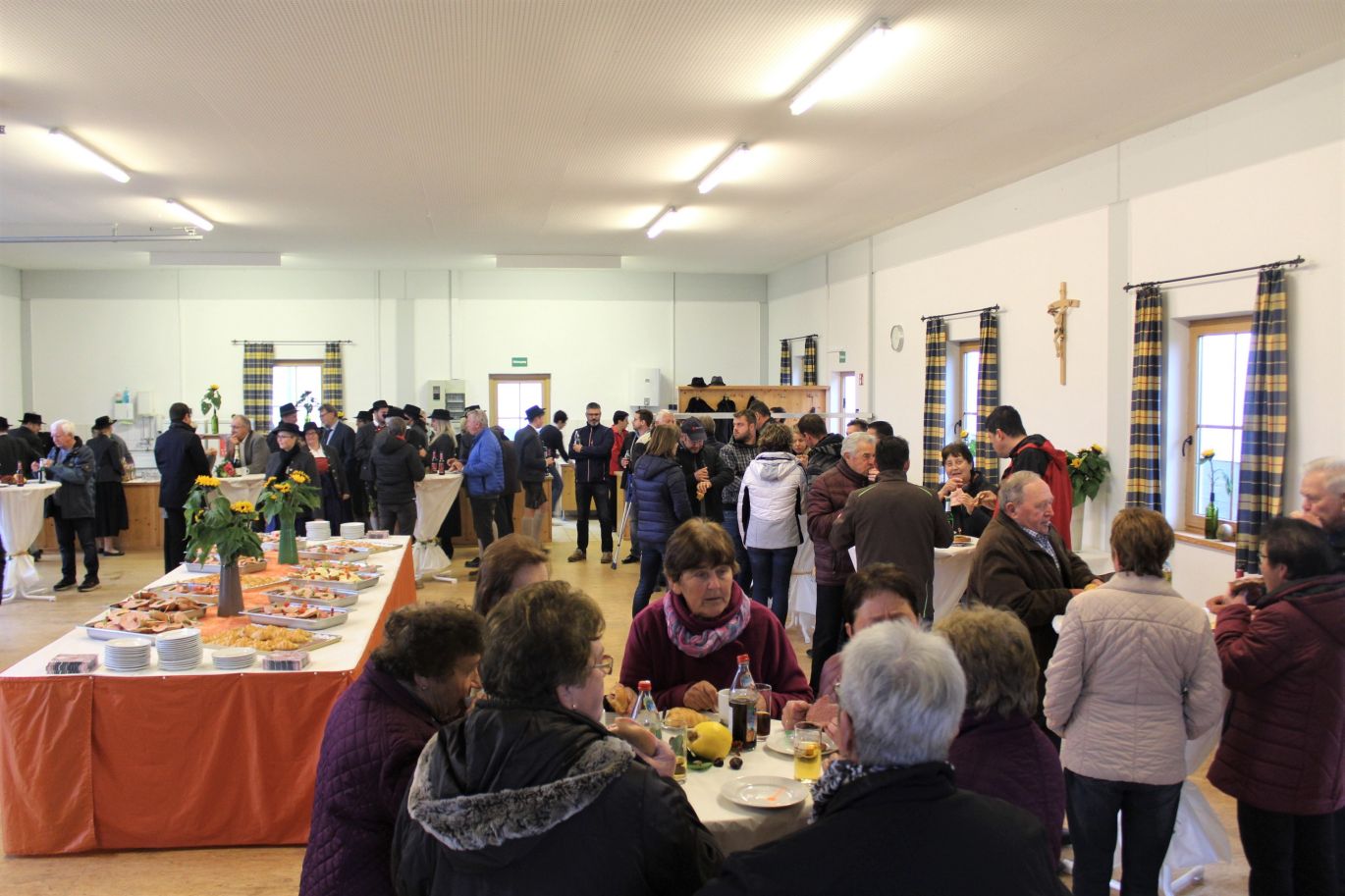 Umrahmt wurde das Ganze musikalisch von der hiesigen Marktkapelle. Im Anschluss begaben sich die Gäste zu einem kleinen Imbiss ins Pfarrheim von Weichenried. Zum Gelingen der Veranstaltung trugen auch die Feuerwehr von Hohenwart sowie der Obst- und Gartenbau-Verein aus Weichenried bei. Während die Floriansjünger durch eine Absperrung der B300 dafür Sorge trugen, dass alle sicher die Straße überqueren konnten, waren die Mitglieder des Obst- und Gartenbau-Vereins für das leibliche Wohl der Gäste zuständig. Zudem sorgten sie mit der Dekoration für das passende Ambiente im Weichenrieder Pfarrsaal.
