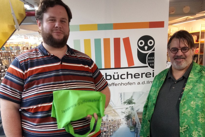 Nach der Pause sprang spontan Alexander Bálly (Foto oben, rechts) als Ersatz für die verhinderte Lisa Guzz ein. Er gab Kindergedichte, ein paar heitere Gedichte zu allerlei Getier sowie einen Ausschnitt aus dem ersten Band mit Detektiv Wimmer ("Der Tote am Maibaum") zum besten. Die Brezenrunde findet jeweils am zweiten Samstag im Monat in der Kreisbücherei in Pfaffenhofen statt. Autoren aus der Region lesen dabei aus ihren Werken. Der Eintritt ist frei. Zusätzlich gibt es Kaffee und die namensgebenden Brezen. Die nächste Brezenrunde findet am Samstag 14. Dezember, statt – unter dem Motto "Heilige Zeit". Dann lesen Raphael Lichtenberg und Alexander Bálly.
