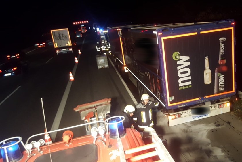 Fünf Wagen wurden beim Überfahren eines Eisenteils demoliert. An einem Lkw wurde der Tank aufgerissen, 600 Liter Sprit liefen aus.