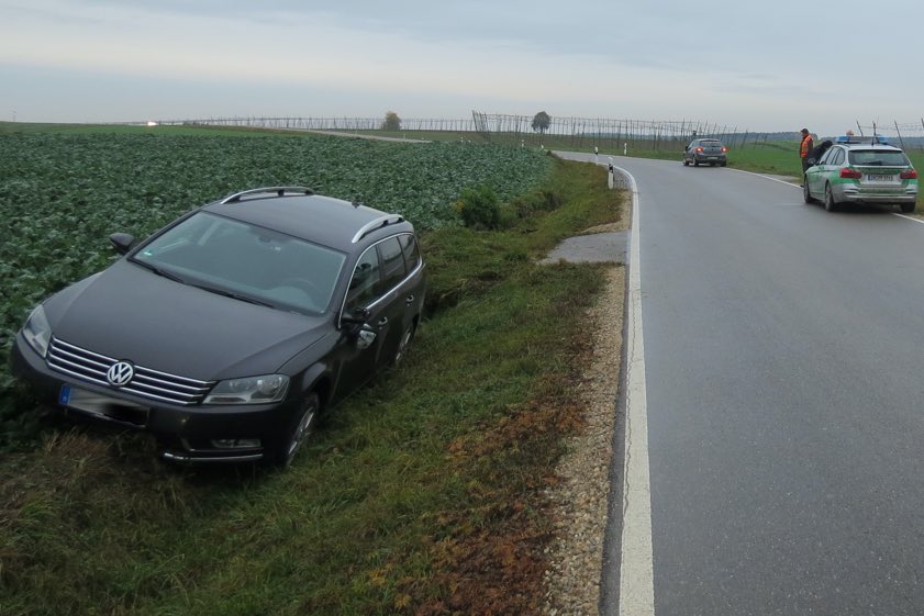Während die Autos des Überholenden und des Überholten – sie touchierten sich nicht – laut Polizei auf der Straße zum Stehen kamen, landete der Pkw des 56-Jährigen nach dem Ausweich-Manöver im Graben und wurde dadurch "erheblich beschädigt". Der Fahrer habe über Schmerzen im Rücken- und Armbereich geklagt; nach der polizeilichen Unfall-Aufnahme habe er sich selbstständig zu einem Arzt begeben. Sein Wagen musste abgeschleppt werden. Sachschaden insgesamt: geschätzte 9000 Euro. Die beiden anderen Pkw-Lenker seien unverletzte geblieben.
