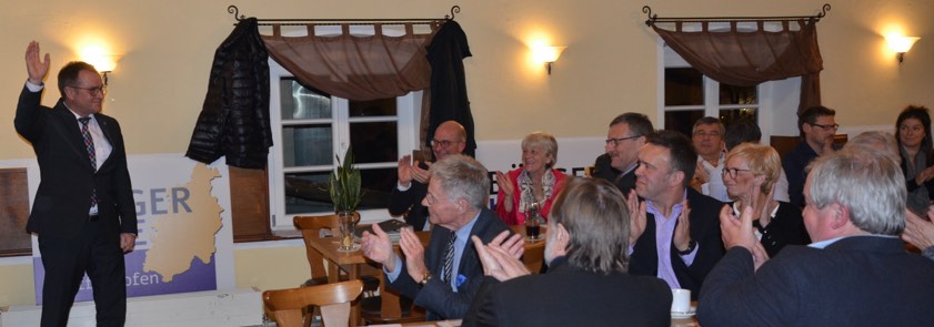 Applaus für Karl Huber (links), nach seiner eistimmigen Wahl zum Landrats-Kandidaten.