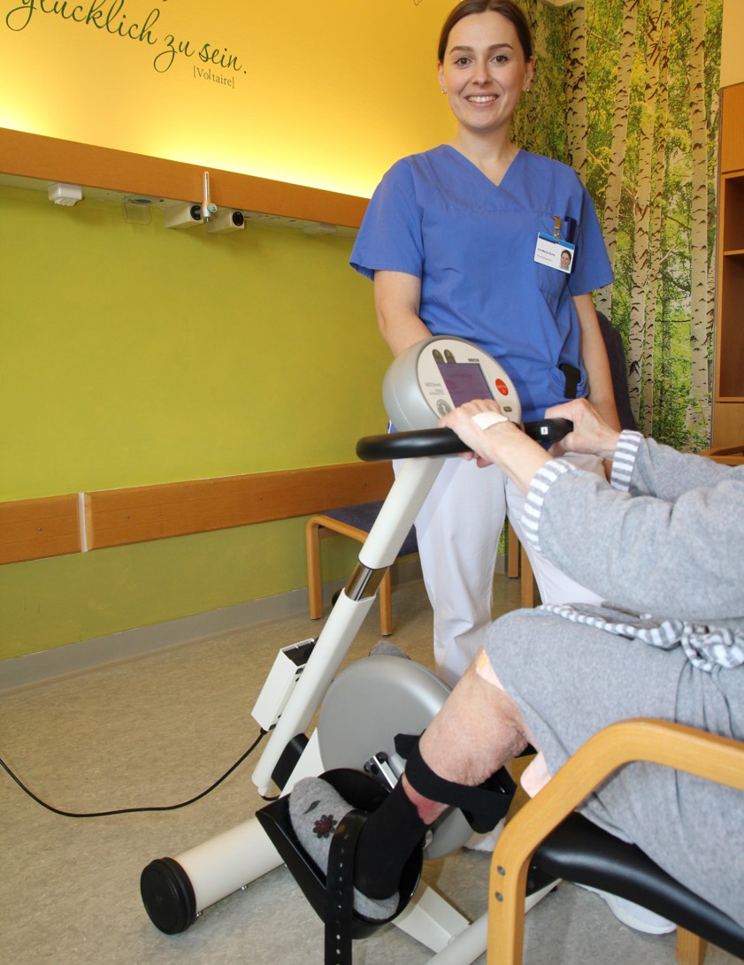 (ty) "Wohnortnahe Rehabilitation ist besonders für ältere Menschen nach akuten Erkrankungen oder Unfällen wichtig, um wieder weitgehend Selbstständigkeit in der Lebensführung zu erlangen", sagt Bianca Frömer, die Sprecherin der Ilmtalklinik-GmbH mit ihren beiden Krankenhaus-Standorten in Pfaffenhofen und Mainburg. "Dazu gehören auch Trainingsgeräte, die den Muskelaufbau und die körperliche Beweglichkeit fördern." Die Akutgeriatrie-Abteilung der Klinik habe daher einen "Motomed"-Bewegungstainer angeschafft, der anteilig von den Angehörigen eines Patienten finanziert worden sei.