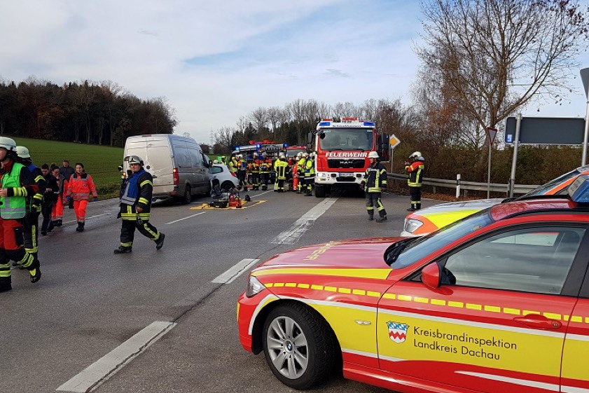 An der Unglücksstelle im Einsatz waren die Feuerwehren aus Oberbachern, Günding, Feldgeding und Schwabhausen, das THW aus Dachau, der Rettungsdienst, die Dachauer Kreisbrandinspektion und Beamte der Dachauer Polizeiinspektion. Wegen der Rettungs-Maßnahmen sowie der sich anschließenden Aufräum- und Reinigungs-Arbeiten waren umfangreiche Straßensperrungen nötig, die bis etwa 13 Uhr andauerten.