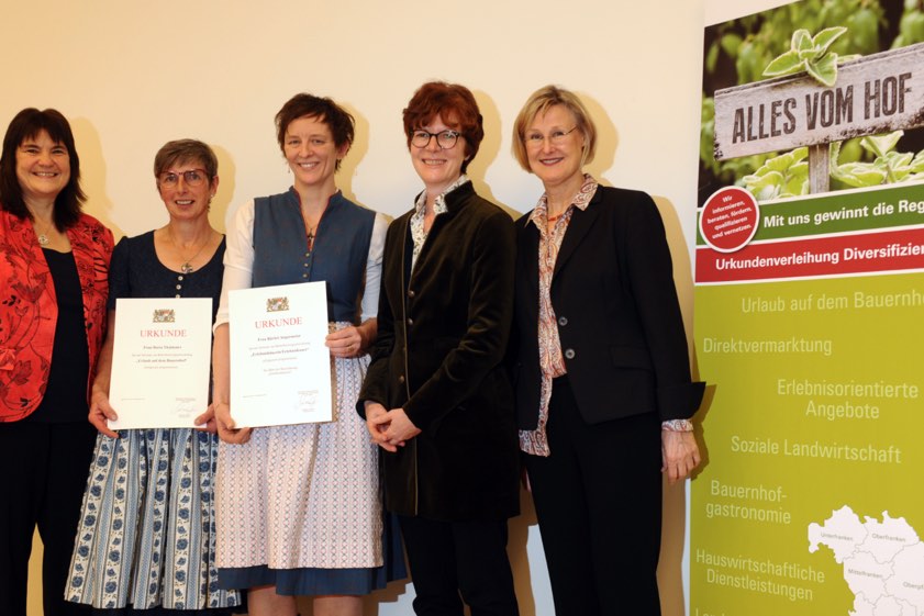Wie das Amt für Ernährung, Landwirtschaft und Forsten (AELF) aus Pfaffenhofen mitteilt, bekamen beide Unternehmerinnen bei einem Festakt im München von Landwirtschafts-Ministerin Michaela Kaniber (CSU) unterzeichnete Urkunden für ihr erfolgreiches Engagement ausgehändigt (Foto oben). Behördenleiter Christian Wild begrüßte die Initiative der beiden Pfaffenhofenerinnen, ihre Betriebe breiter aufzustellen. Zudem werde es immer wichtiger, Kindern und Jugendlichen als Verbrauchern der Zukunft die Landwirtschaft auf den Betrieben zu erklären und erlebbar zu machen.
