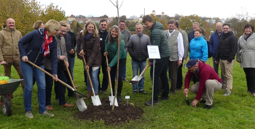 Heike Grosser, Fachberater-Sprecherin für Oberbayern, begründete die Wahl eines Speierlings: "Der Baum ist eine Rarität für Oberbayern, die Blüten insektenfreundlich, die Früchte der gepflanzten Kulturform Sossenheimer Riese finden als Beigabe zu Most Verwendung und durch die Trockenverträglichkeit ist der Baum tauglich für den Klimawandel." Auch Professor Bernd Hertle freute sich als Leiter der Weihenstephaner Gärten über die Spende, denn der Speierling fehlte noch in den umfangreichen Pflanzungen. Der Standort beim Wildobst wurde durch Hunderte Blumenzwiebeln ergänzt.