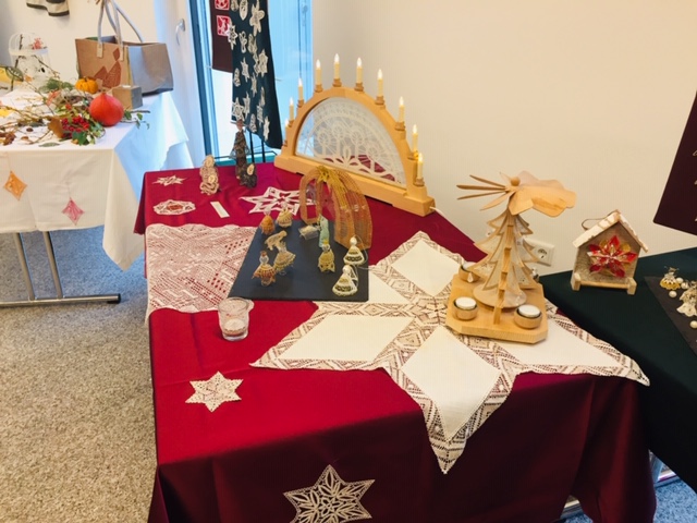Die Exponate zeichneten sich durch unterschiedlichste Techniken aus und offenbarten, wie weit das Spektrum beim Klöppeln reichen kann. Fazit: Die zahlreichen Besucher der Ausstellung waren durchweg begeistert und die Klöpplerinnen konnten viele interessante Gespräche führen. Nachfolgend einige Impressionen sowie ein Gruppenfoto bei der Geschenk-Übergabe.