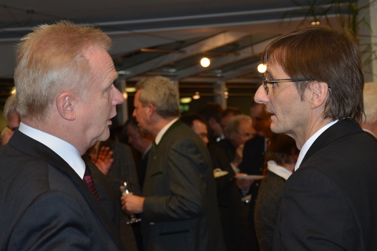 Konkurrenz belebt das Gespräch: Vorstandsmitglied Herbert Zopp von der Volksbank-Raiffeisenbank Bayern Mitte und Norbert Lienhard, der Boss der Pfaffenhofener Sparkasse und Hausherr.