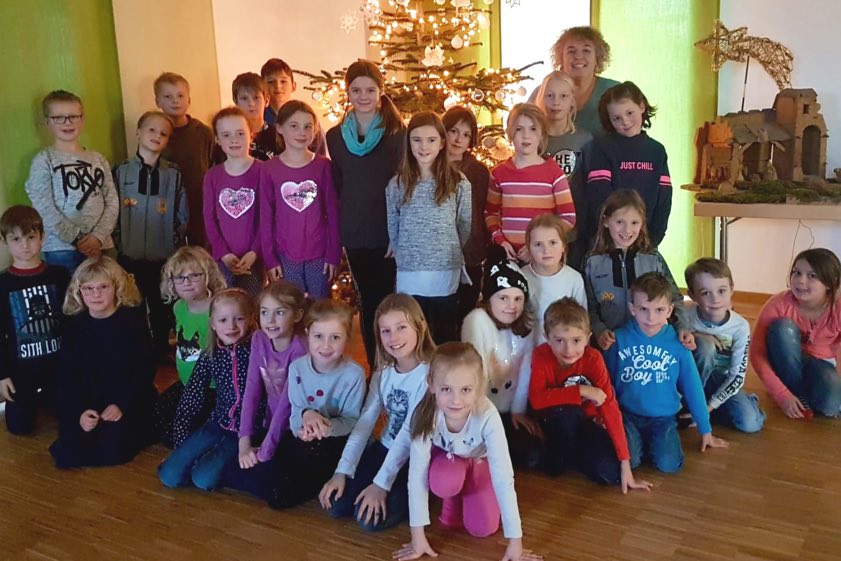 (ty) Kürzlich besuchten wieder knapp 30 Musikschülerinnen und -schüler ein Highlight der Weihnachtszeit: Das traditionelle Weihnachtskino des Musiktreffpunkts Feldmann. Bisher fand die Vorführung immer im heimischen Wohnzimmer der Feldmanns in Scheyern-Fernhag statt, heuer zum ersten Mal im neuen Scheyrer Pfarrzentrum (Foto oben). Gezeigt wurde der Film "Hanni und Nanni".